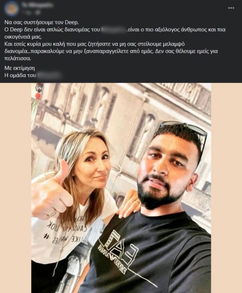 Η ιδιοκτήτρια του εστιατορίου τονίζει ότι ο Deep, όπως είναι το όνομα του διανομέα είναι «οικογένεια» και στέλνει ξεκάθαρο μήνυμα: «δεν σας θέλουμε για πελάτισσα».
