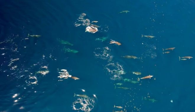 Η ομάδα Up Stories απαθανάτισε από ψηλά το μεγαλύτερο κοπάδι δελφινιών που έχει καταγραφεί ποτέ στην Ελλάδα με χρήση drone και το αποτέλεσμα ήταν τουλάχιστον εντυπωσιακό.