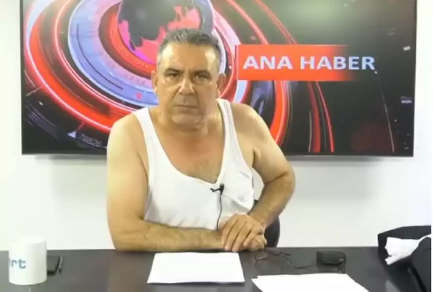 «Το κάνω αυτό για να ακουστεί η φωνή του Χατάι», τόνισε ο παρουσιαστής του HRT AKDENIZ, Αλί Γιολτζού, την ώρα που έβγαζε το σακάκι και το πουκάμισό του σε ζωντανή σύνδεση.