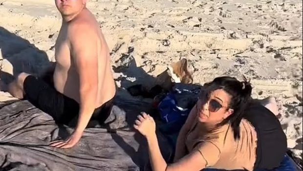 Ένα βίντεο που αναρτήθηκε στο TikTok κατέγραψε τη στιγμή που μια έγκυος εννέα μηνών έπιασε τον σύζυγό της με την ερωμένη του στην παραλία.