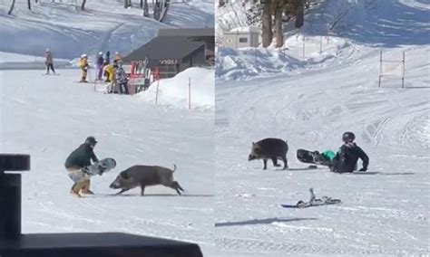 Το αγριογούρουνο εμφανίστηκε σε πίστα σκι στην πόλη Μιόκο, στην περιφέρεια Νιγκάτα της Ιαπωνίας. Και έκανε ολόκληρο σπριντ στην πλαγιά για επιτεθεί σε δυο άτομα που έκαναν snowboard!
