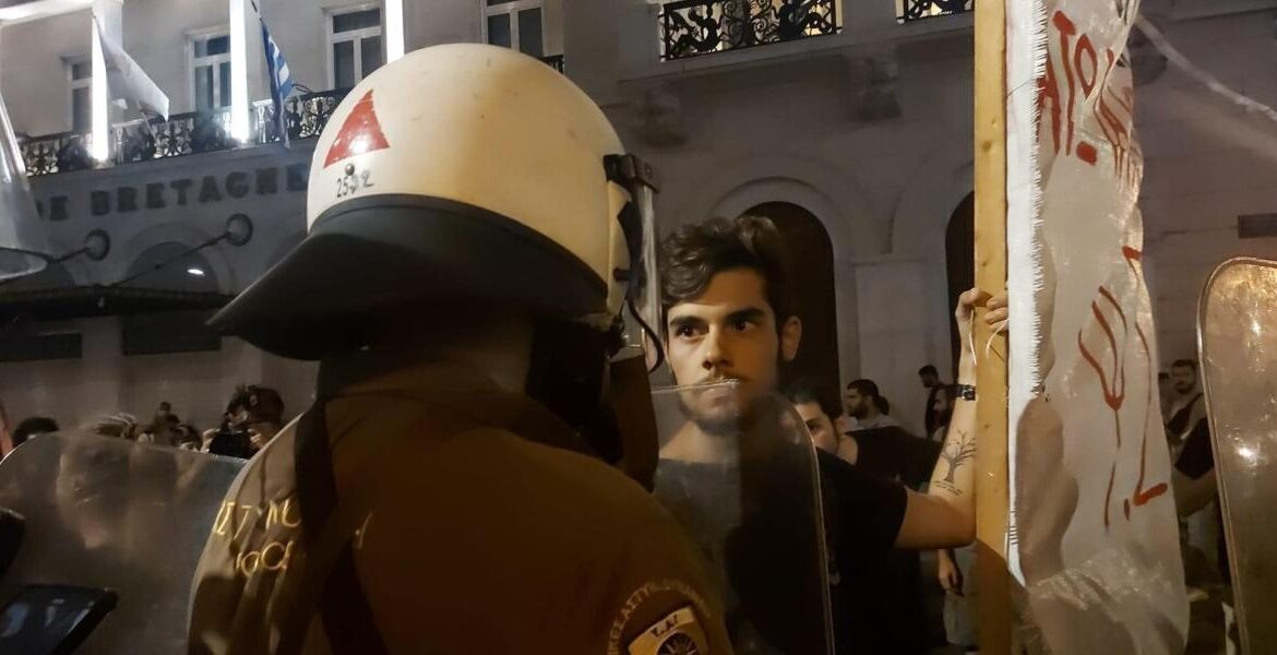 Το βίντεο της Αυγής που δείχνει το τετ α τετ φοιτητή με ΜΑΤατζή από το πανεκπαιδευτικό συλλαλητήριο στα Προπύλαια, έγινε viral.