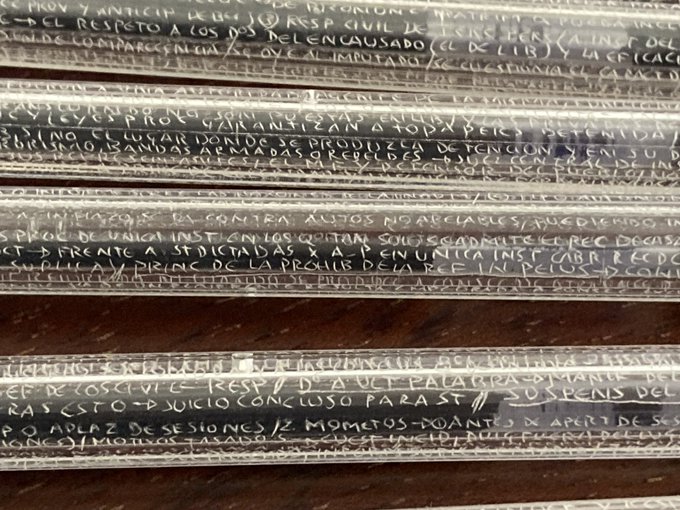 Haciendo orden en mi despacho he encontrado esta reliquia universitaria que confiscamos a un alumno hace unos años: el derecho procesal penal en bolis bic. Que arte! #laschuletasnosoncomoantes
