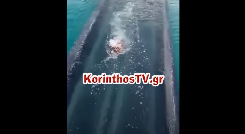 Τον γύρο του διαδικτύου κάνει βίντεο με τις αγωνιώδεις προσπάθειες ενός σκύλου να βγει στη στεριά ενώ βυθίζεται η μικρή γέφυρα του Ισθμού.