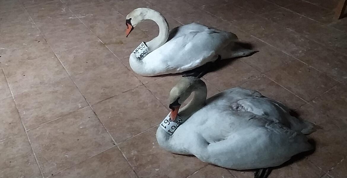 Ο θηλυκός κύκνος τραυματίστηκε και ο σύντροφός της έμεινε δίπλα της, ακολούθησε τον διασώστη και μπήκε μέσα στον χώρο περίθαλψης
