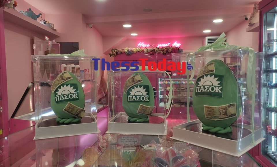 Ένα πρωτότυπο γλυκό για το Πάσχα παρασκευάζει ζαχαροπλαστείο στην Κατερίνη, όπου ανάμεσα στις τούρτες και στις πάστες φιγουράρουν σοκολατένια αυγά ΠΑΣΟΚ, τα οποία έχουν αποδειχθεί best seller και ξεπουλούν αμέσως μόλις βγουν από το εργαστήριο.