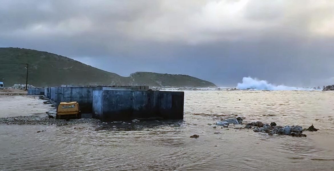 Από την σφοδρή κακοκαιρία των τελευταίων ημερών που έπληξε την περιοχή το έργο το κατάπιε η θάλασσα και οι δρόμοι καλύφθηκαν από τη στάθμη της.