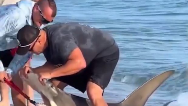 Ένα εντυπωσιακό και συγκινητικό βίντεο κάνει τον γύρο του διαδικτύου αφού λουόμενοι έσωσαν σφυροκέφαλο καρχαρία στον οποίο είχε καρφωθεί αγκίστρι.