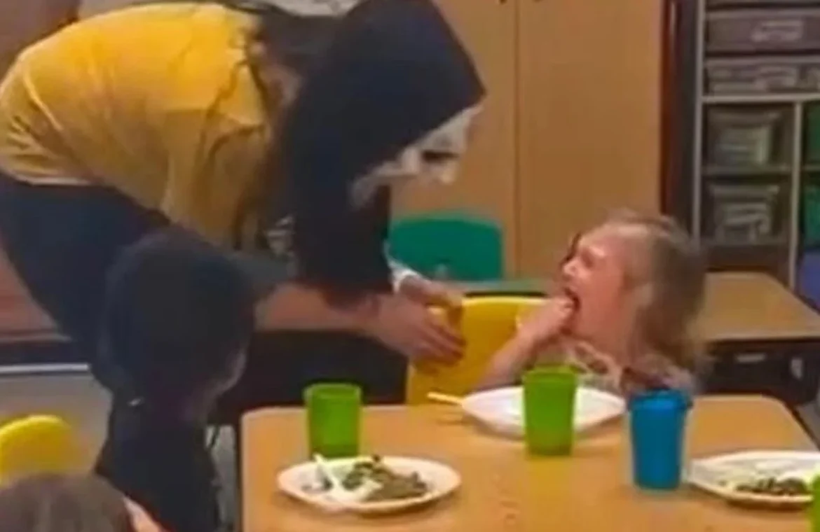 Ένα κοριτσάκι που προσπαθούσε να φάει το μεσημεριανό του, τρόμαξε όταν μια εργαζόμενη στον παιδικό σταθμό με μια ανατριχιαστική αποκριάτικη μάσκα την πλησίασε και της φώναξε στο πρόσωπο.