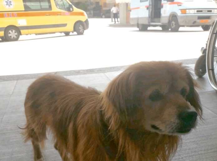 Ο «μπέμπης» συνόδευσε νωρίτερα τον ηλικιωμένο ιδιοκτήτη του στα επείγοντα του νοσηλευτικού ιδρύματος για μια ευτυχώς όχι σημαντική ενόχληση στο μάτι και παραμένει αμετακίνητος μπροστά στην είσοδο, περιμένοντας τον κ.Μιχάλη να φανεί. Οι δύο τους είναι αχώριστοι εδώ και οκτώ χρόνια.