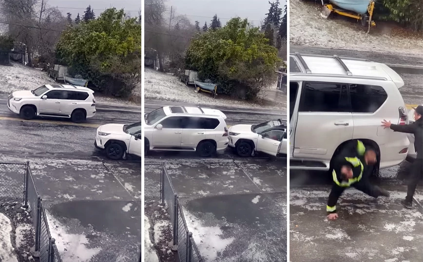 Πόσο άτυχος μπορεί να είσαι να γλιστράς με το αυτοκίνητο στον πάγο και να πέφτεις πάνω σε άλλο αυτοκίνητο;