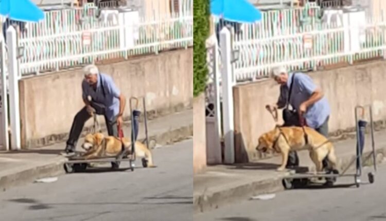 Σκύλος: Πόση αγάπη, αχ πόση φροντίδα.. Ένας παππούς κάνει καθημερινά τα πάντα για τον ανάπηρο σκύλο του για να χει όσο το δυνατόν καλύτερη ποιότητα ζωής. Ένα φωτεινό παράδειγμα σε έναν σκοτείνο κόσμο.
