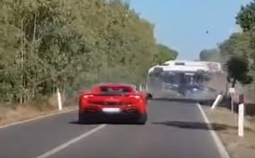 Μια Ferrari και μια Lamborghini επιχείρησαν να προσπεράσουν ταυτόχρονα ένα τροχόσπιτο στους στενούς δρόμους της Σαρδηνίας