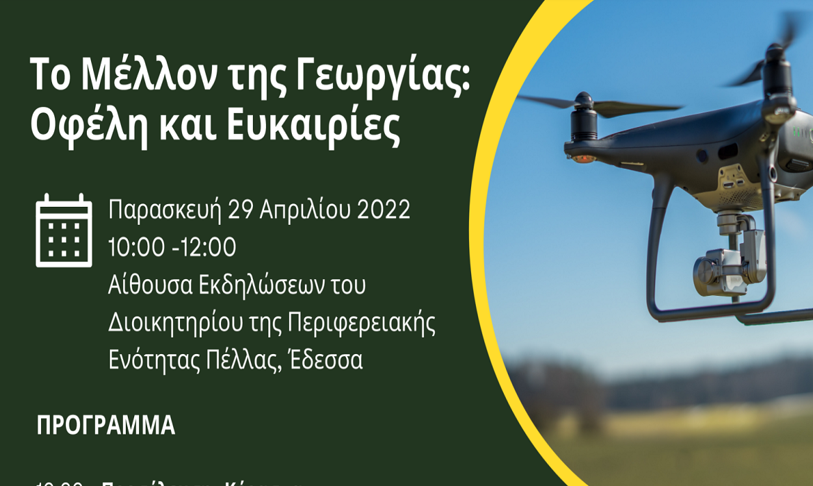 Το Perrotis College της Αμερικανικής Γεωργικής Σχολής Θεσσαλονίκης και το Κέντρο Ευρωπαϊκής Πληροφόρησης Europe Direct Κεντρικής Μακεδονίας (με φορέα υποδοχής το Perrotis College), σε συνεργασία με το Δήμο Έδεσσας, διοργανώνουν την Παρασκευή 29 Απριλίου 2022 (10:00 – 12:00) εκδήλωση με τίτλο: «Το Μέλλον της Γεωργίας: Οφέλη και Ευκαιρίες”.
