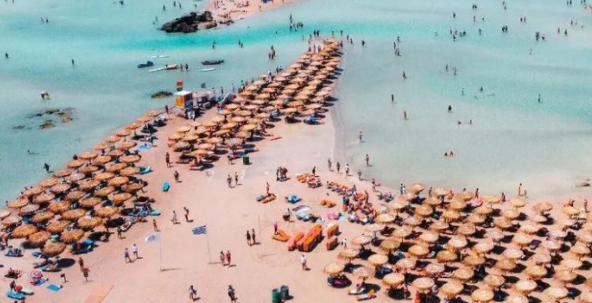 Άπειρες ομπρέλες και ξαπλώστρες στην παραλία του Ελαφονησίου προκάλεσαν πλήθος σχολίων – κυρίως αρνητικών – στα μέσα κοινωνικής δικτύωσης.