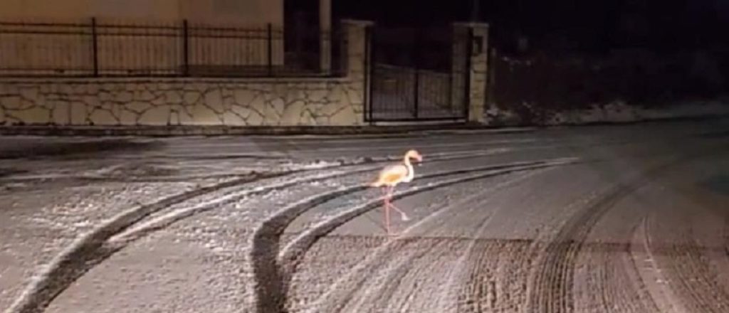 Σύμφωνα με το evrytanika.gr, σε βίντεο που αναρτήθηκε από κάτοικο, το βράδυ του Σαββάτου, στον Άγιο Νικόλαο Ευρυτανίας, εμφανίζεται ένα φλαμίνγκο να περιφέρεται στο χιόνι, σε έναν από τους δρόμους του χωριού.