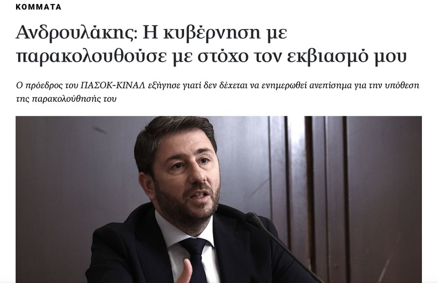 @androulakisnick εξέδωσε ανακοίνωση δια του ΠΑΣΟΚ, κατηγορώντας με ότι ανακάλυψα σενάρια εκβιασμών του. Με αποκαλεί δε, επικοινωνιακό βραχίονα του ΣΥΡΙΖΑ. Για να τελειώνουμε με τον Ανδρουλάκη ο οποίος ανακάλυψε την τακτική Μητσοτάκη επίθεσης σε δημοσιογράφους: 1. Το σενάριο εκβιασμού του μέσω των παρακολουθήσεων το έχει ανακοινώσει ο ίδιος μιλώντας στις 31 Αυγούστου 2022 στο ΣΚΑΙ . Είπε συγκεκριμένα “η κυβέρνηση με παρακολουθούσε με στόχο τον εκβιασμό μου”. Αυτός προφανώς ξέρει γιατί το είπε. Είναι καλύτερο να μας το πει πριν το μάθουμε αλλιώς. 2. Η τακτική που ακολούθησε ο Ανδρουλάκης ενισχύει τα περί εκβιασμού. Η αντίδρασή του για τις υποκλοπές είναι φοβική πολιτικά και φροντίζει να κατηγορεί πρόσωπα γύρο από τον Μητσοτάκη και όχι τον ίδιο. Δεν έχει μηνύσει για παράδειγμα την Εισαγγελέα της ΕΥΠ για την παράνομη παρακολούθησή του. Δεν ζήτησε από τον Μητσοτάκη εξηγήσεις όταν τον είχε δίπλα του στο debate. Δεν έδωσε τη δυνατότητα στην Ευρωσοσιαλιστική Ομάδα να πάρει πολιτικές πρωτοβουλίες για τις παρακολουθήσεις όταν του το πρότεινε. Με όσα είπε στον Kontra (ότι ο αριθμός των παρακολουθούμενων δεν είναι τόσο μεγάλος και όσοι έγραψαν για 60-70 παρακολουθούμενους ήταν για να θολώσουν τα νερά), έδωσε μία ακόμη χείρα βοηθείας στον Μητσοτάκη ο οποίος προσπαθεί να δώσει την εντύπωση ότι δεν έχουμε σκάνδαλο παρακολουθήσεων αλλά ένα…ατύχημα. 3. Η σταθερότητα την οποία επικαλείται ο Ανδρουλάκης έχει μία και μόνο διάσταση. Φαίνεται να είναι σταθερός στα σενάρια που τον θέλουν να συνεργάζεται με τη ΝΔ. Όχι μόνο δεν τα έχει αποκλείσει αλλά διατηρεί στο κόμμα του την συνιστώσα της ΝΔ και περιμένει την κατάλληλη στιγμή. Σε όλα μάλιστα τα εγκλήματα Μητσοτάκη, εφευρίσκει και ίσες ευθύνες Τσίπρα. 4. Ο Ανδρουλάκης πρέπει να παραδειγματιστεί από την κατάντια του Μητσοτάκη και να σταματήσει να κατηγορεί τη δημοσιογραφία επειδή δεν του αρέσει. Σε ό,τι αφορά το πρόσωπο και την ιστορία μου είναι γνωστή. Του Ανδρουλάκη αναζητούμε από τις Βρυξέλλες, την Ιρλανδία έως την Ελλάδα και την Κίνα. ΥΓ : Το μόνο που επιβεβαιώνει ο πρόεδρος του ΠΑΣΟΚ είναι ότι όσο πιο πολλά είναι τα φώτα τόσο πιο μεγάλη είναι η σκιά. Δεν είναι το μπόι του αυτό που βλέπει. Είναι η σκιά του φαναριού . Ή μήπως του Φαναρά; Σε κάθε περίπτωση καλό είναι, να μην ξύνεται στην γκλίτσα του τσομπάνη.