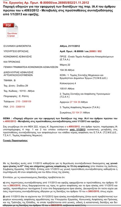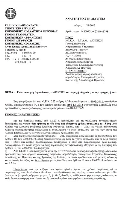 Ψέμα πάνω στο ψέμα! Πιάστηκαν με τη γίδα στην πλάτη με το fakenews ότι ο ΣΥΡΙΖΑ πήγε, τάχα, το γενικό όριο ηλικίας συνταξιοδότησης στα 67 κ τώρα λένε το ακόμη χειρότερο ότι, τάχα, ο δικός τους νόμος 4093/2012 αφορούσε μόνο το δημόσιο, ενώ εμείς το επεκτείναμε στον ιδιωτικό τομέα. Εδώ οι εγκύκλιοι της εποχής για το ΙΚΑ-ΕΤΑΜ κ το Ταμείο των αυτοαπασχολούμενων που ρητά λένε: «από 1/1/2013 γενικό όριο ηλικίας το 67ο». Όχι πώς θα ντραπεί κ κανένας! Άξιος ο μισθός τους….