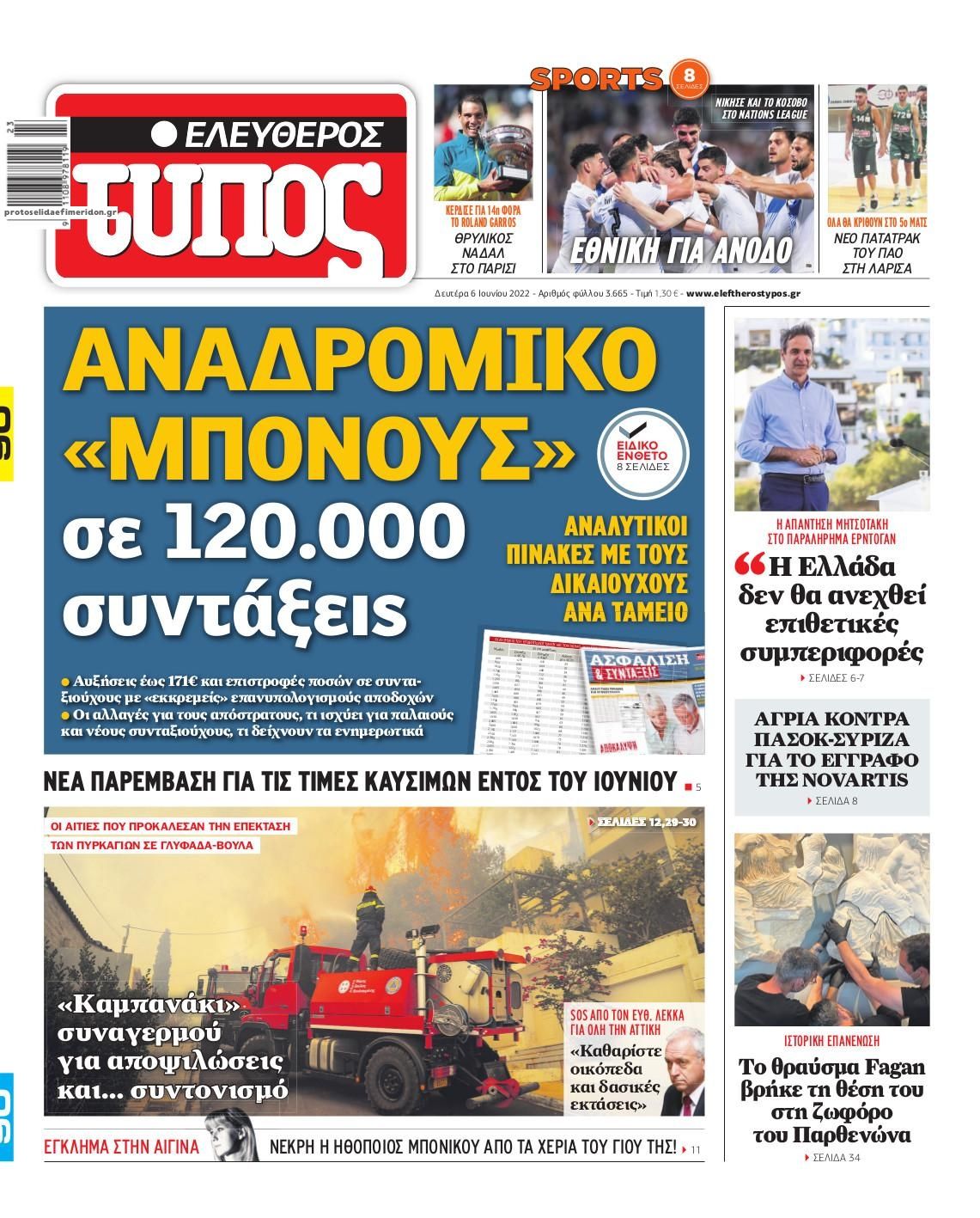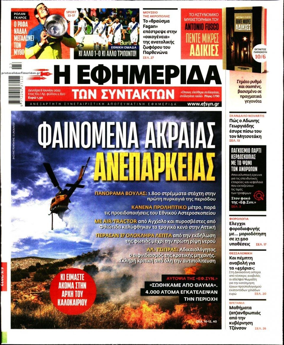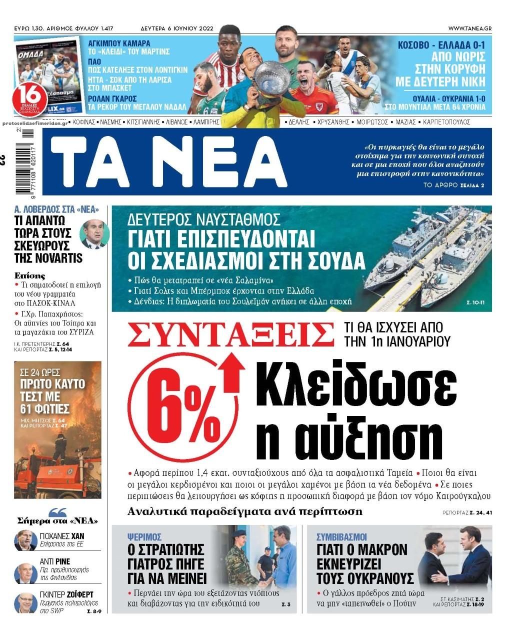 Οι εφημερίδες που κυκλοφορούν σήμερα Δευτέρα 6 Ιουνίου 2022