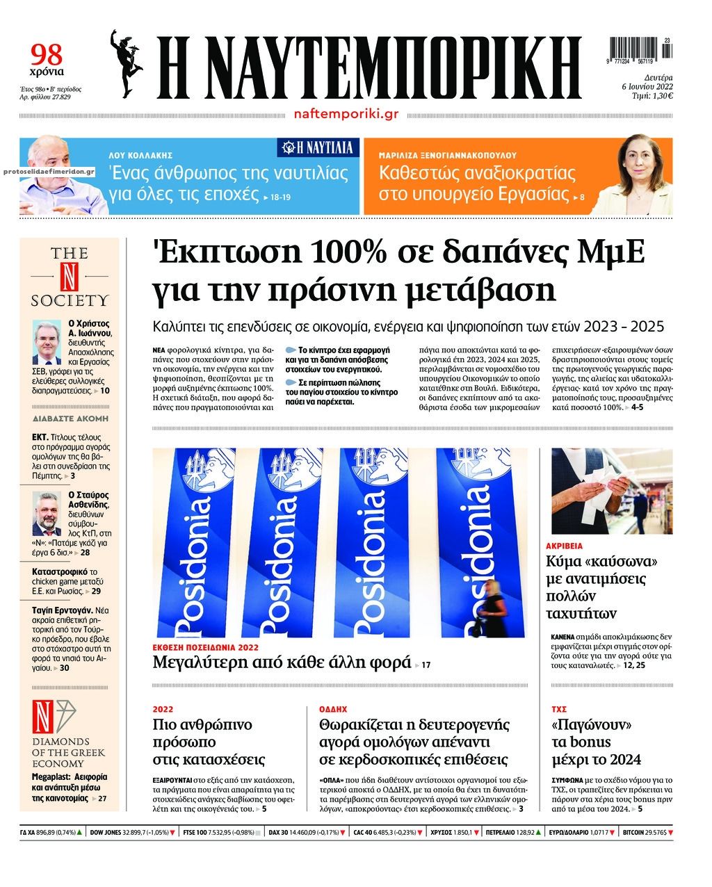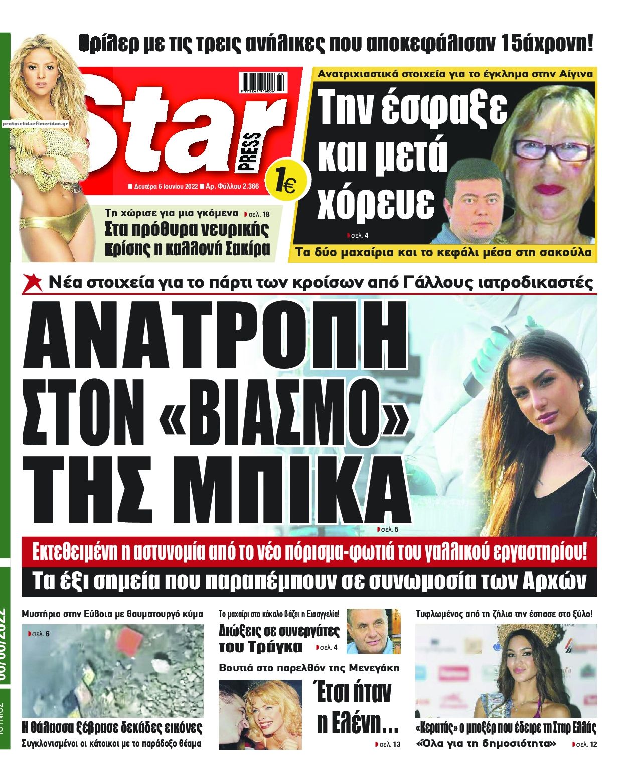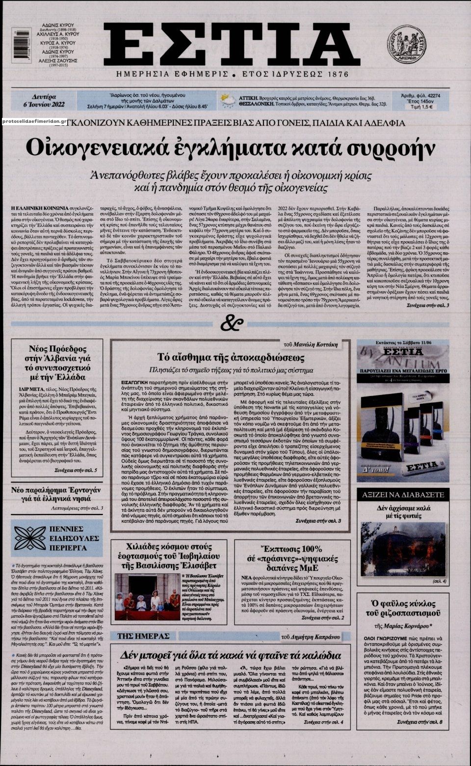 Οι εφημερίδες που κυκλοφορούν σήμερα Δευτέρα 6 Ιουνίου 2022