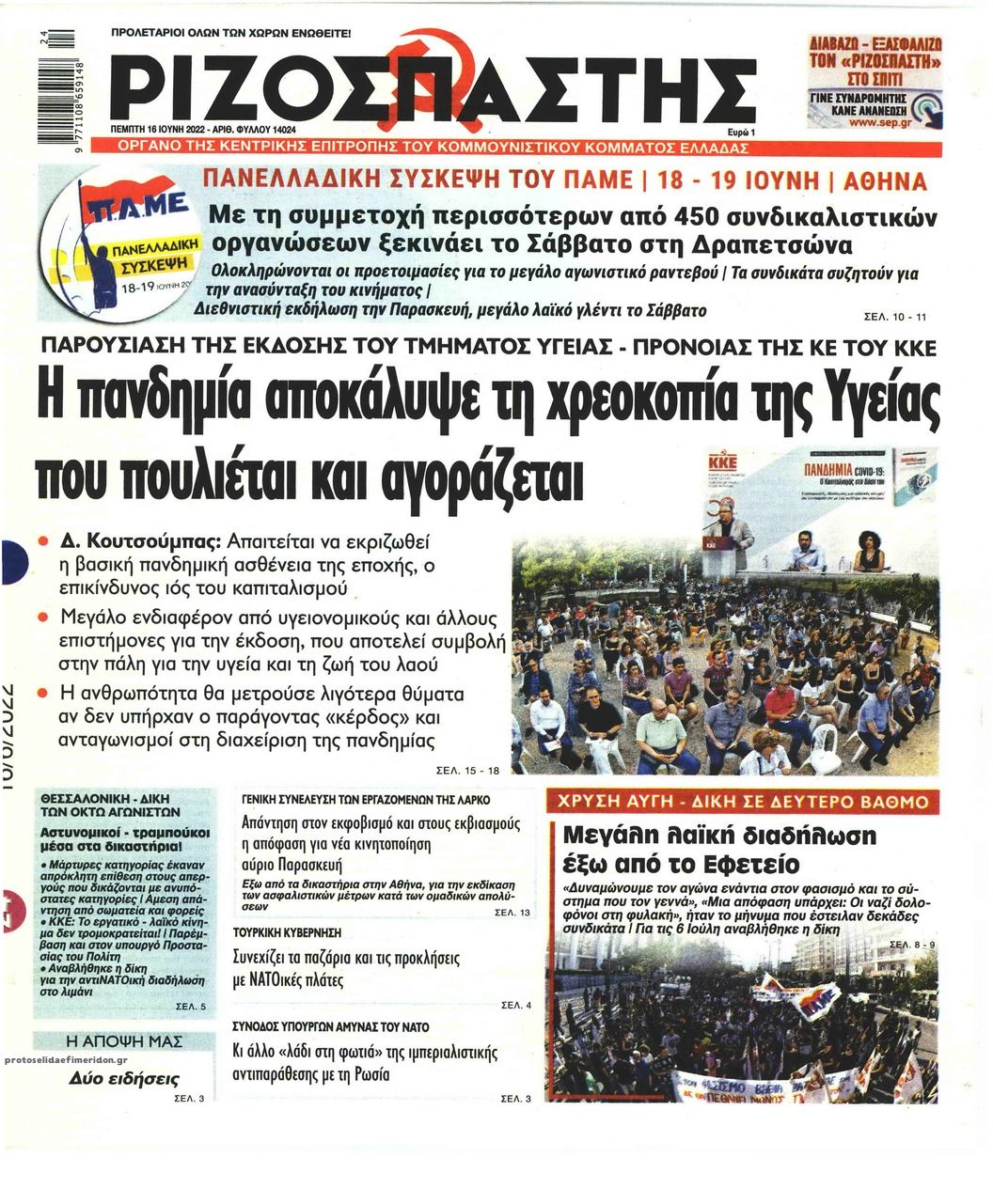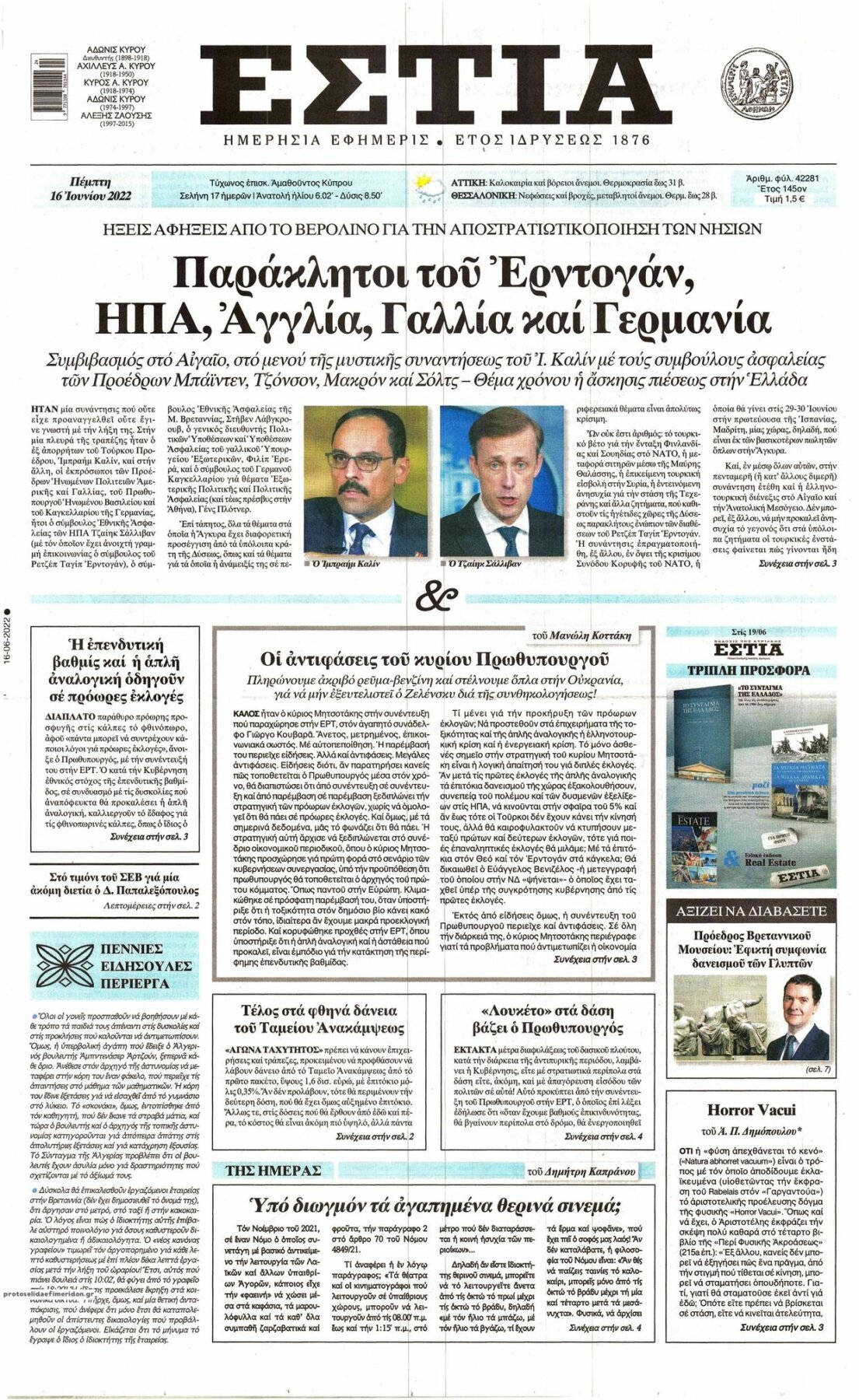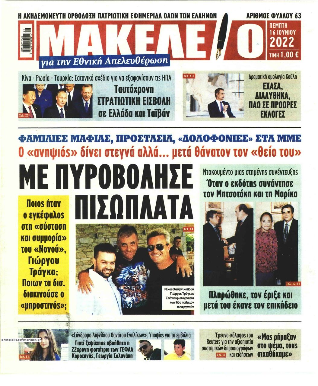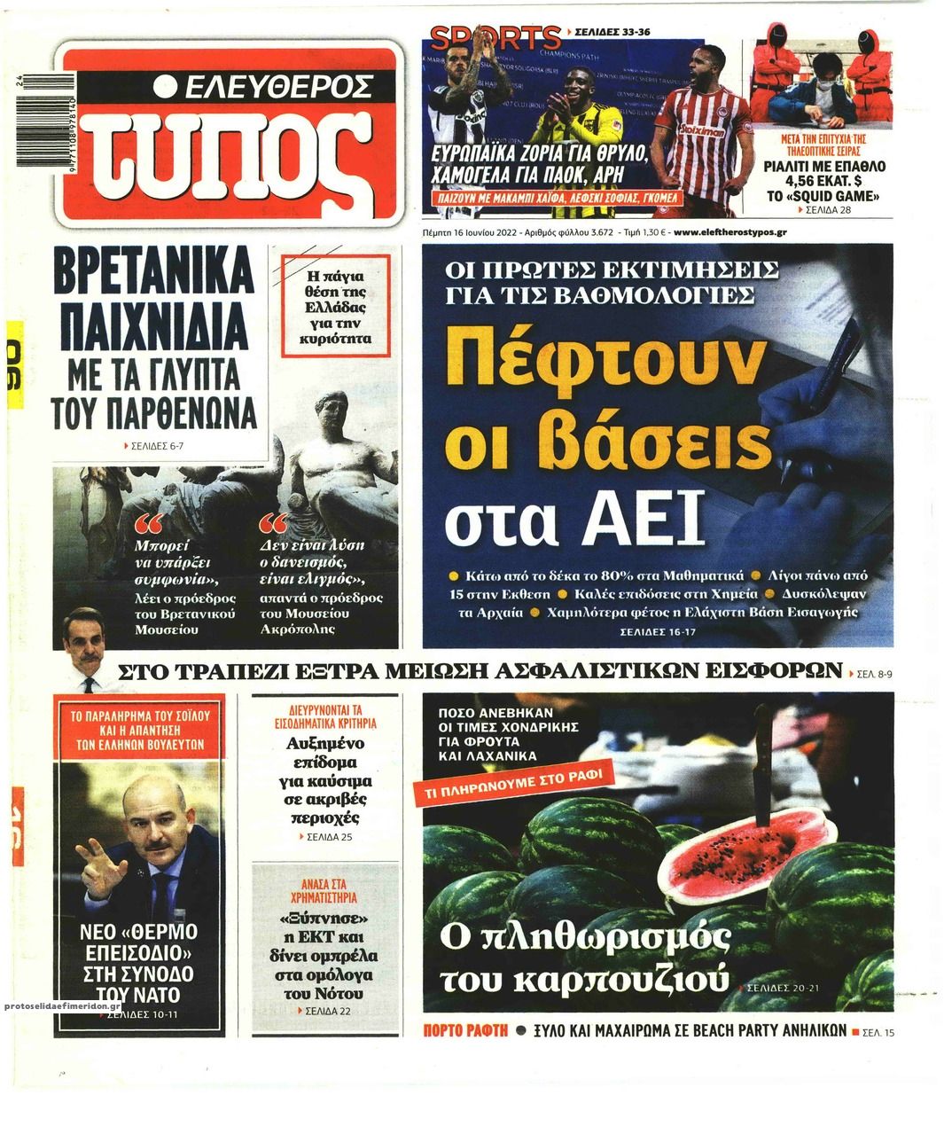 Οι εφημερίδες που κυκλοφορούν σήμερα Πέμπτη 16 Ιουνίου