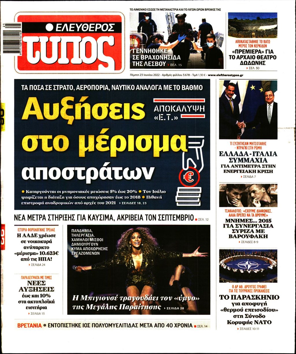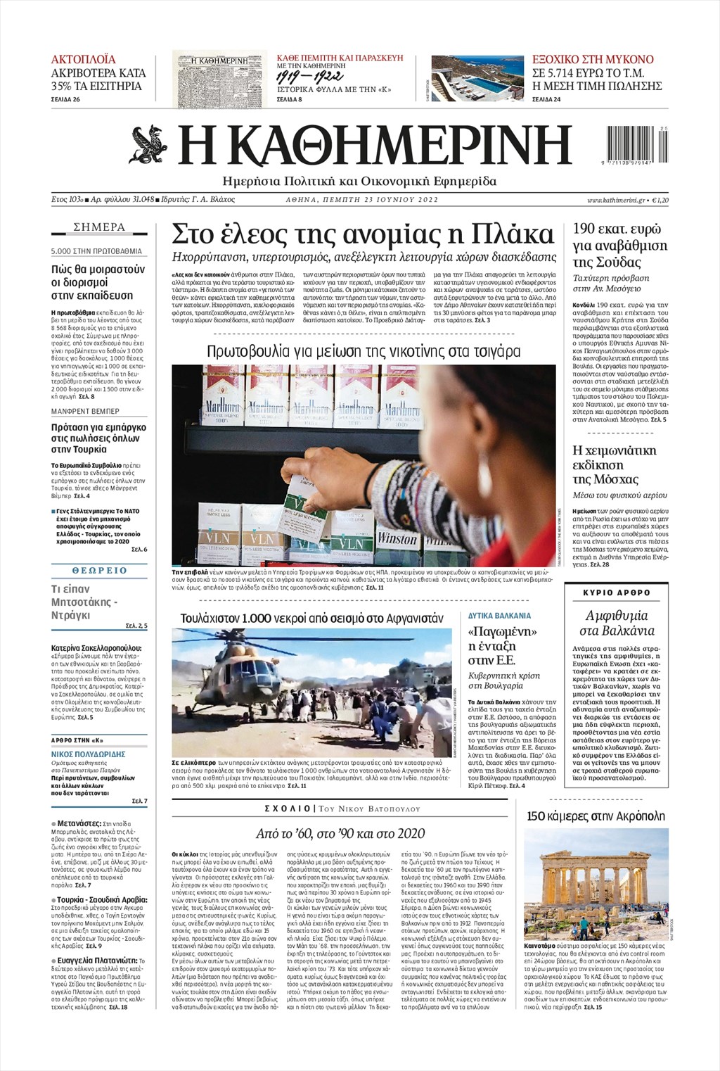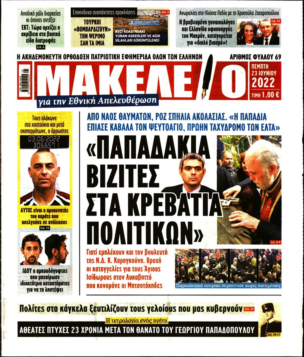 Οι εφημερίδες που κυκλοφορούν σήμερα Πέμπτη 23 Ιουνίου 2022