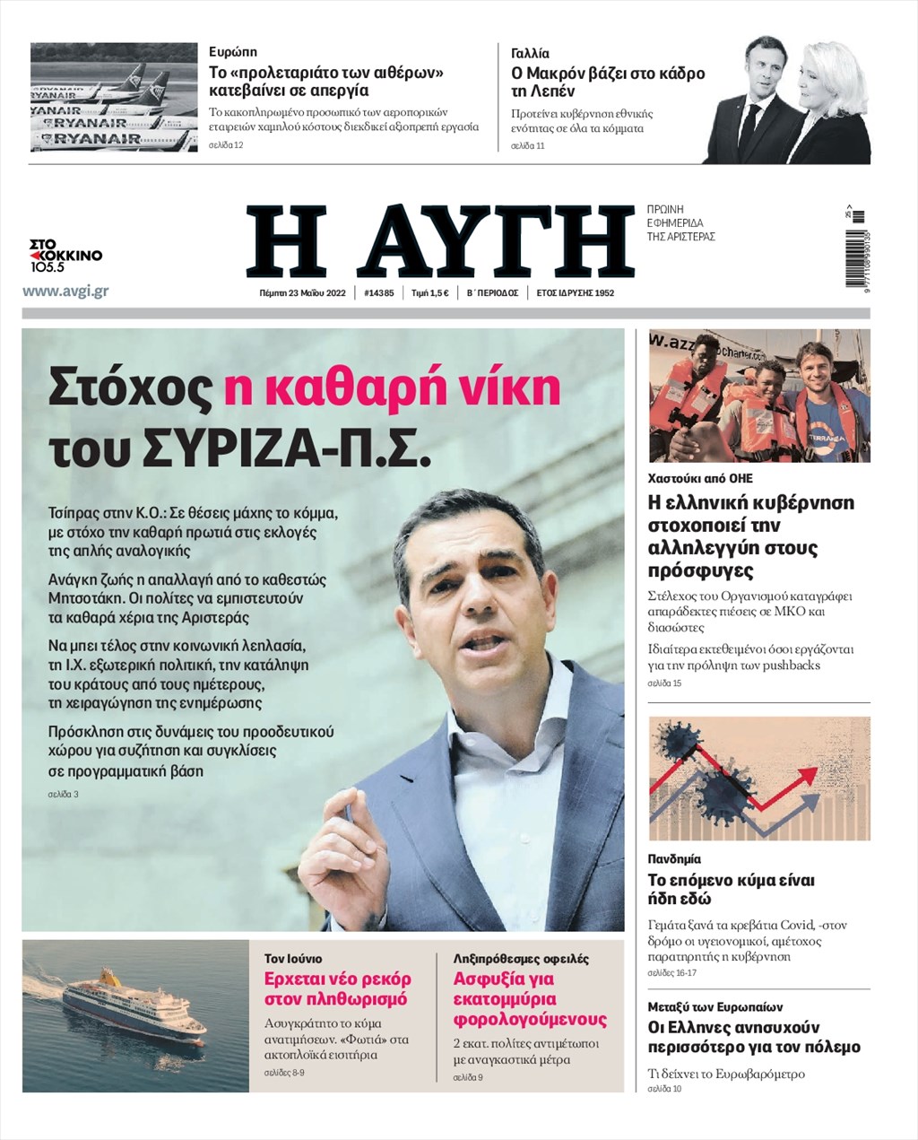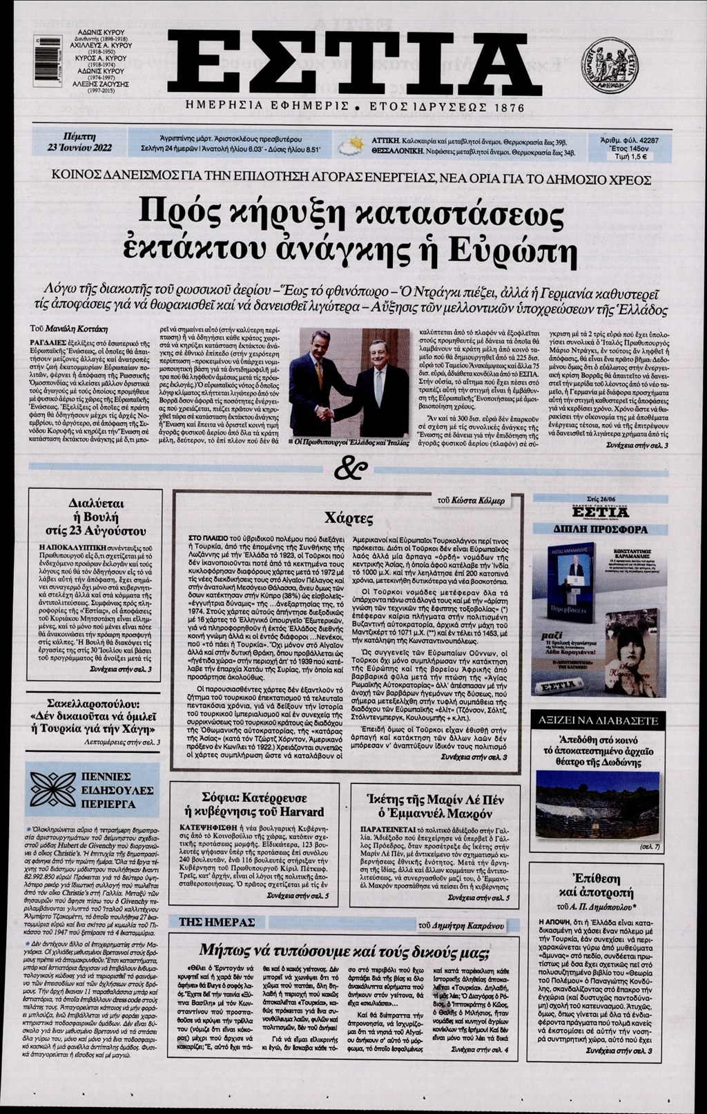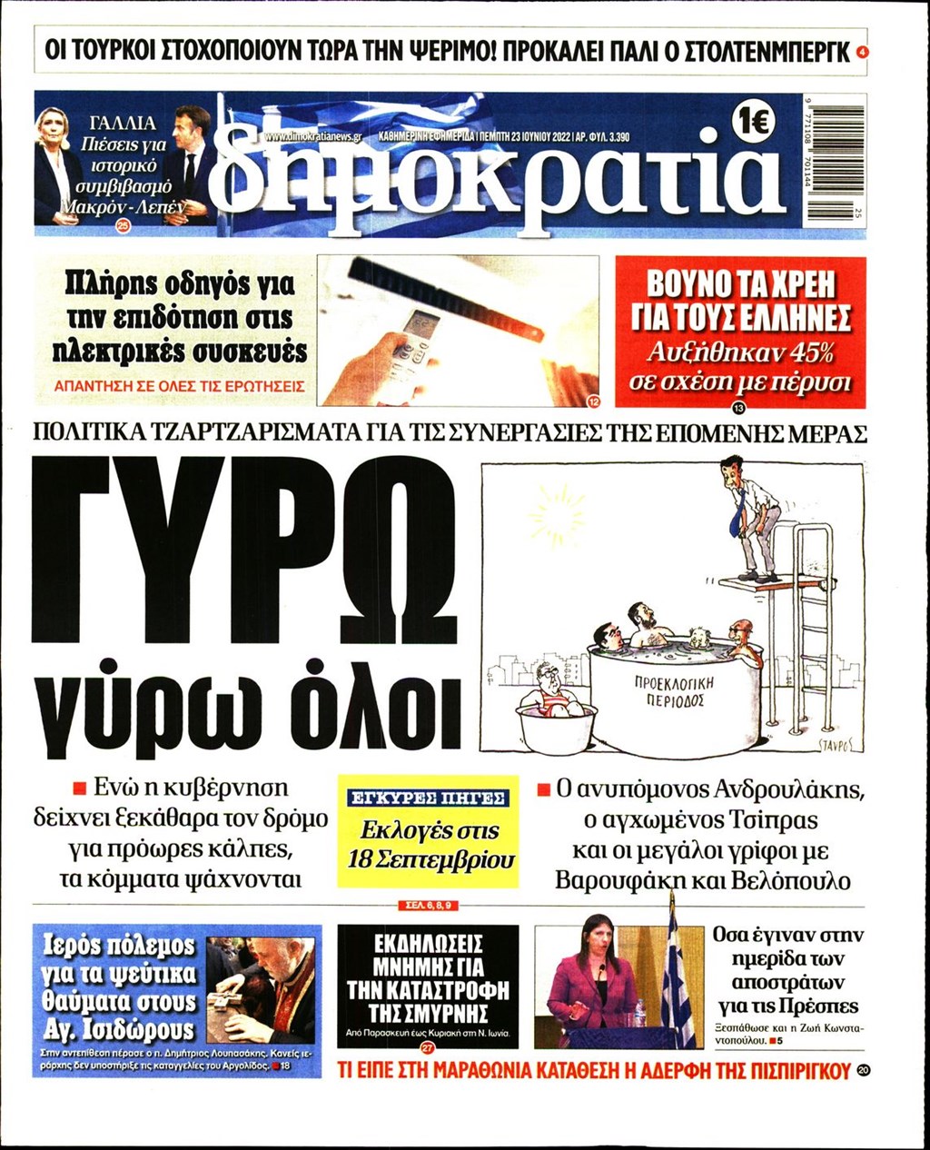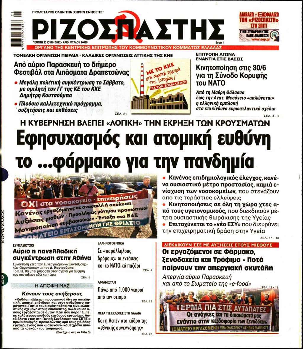 Οι εφημερίδες που κυκλοφορούν σήμερα Πέμπτη 23 Ιουνίου 2022