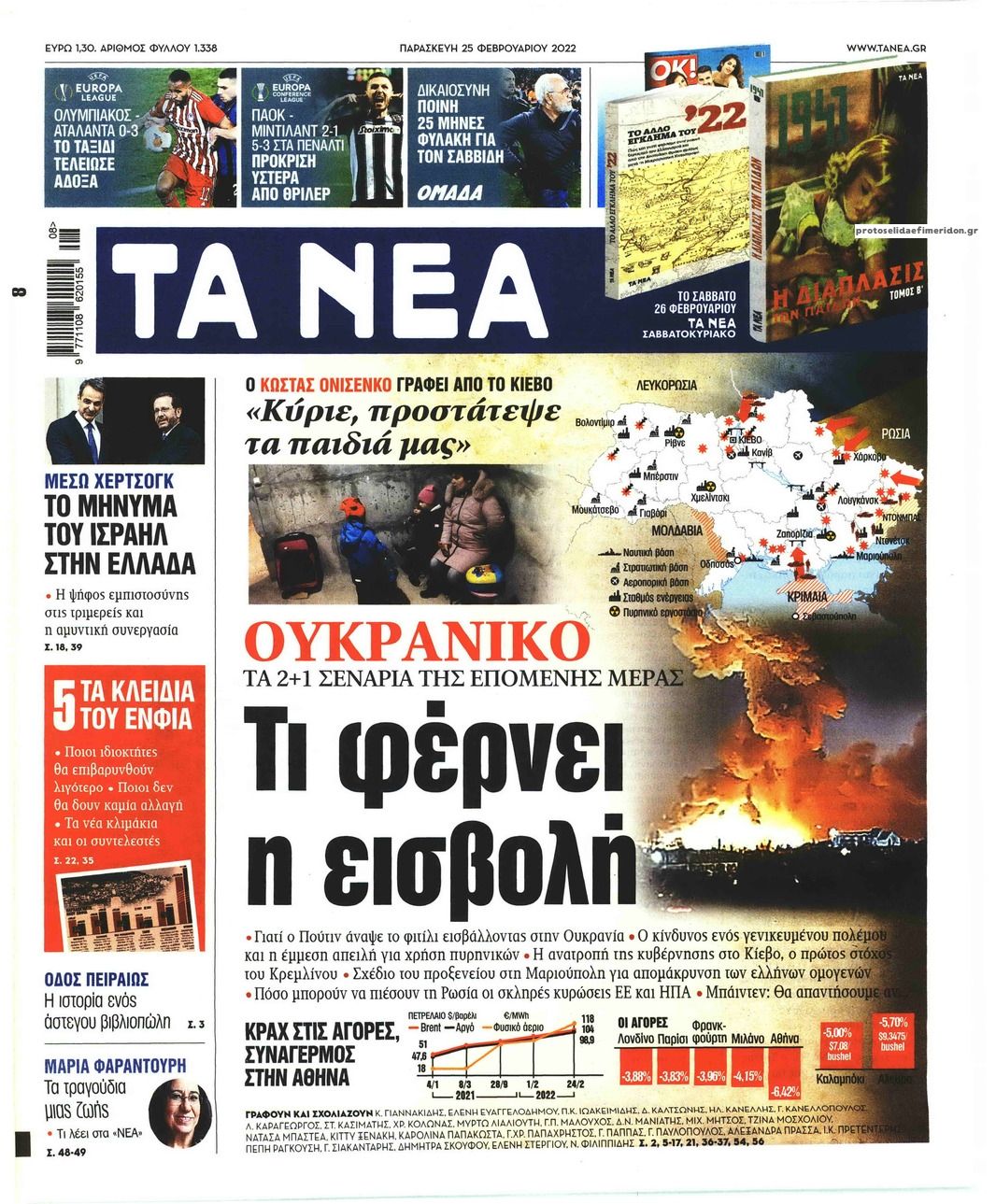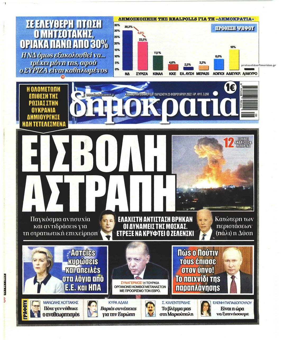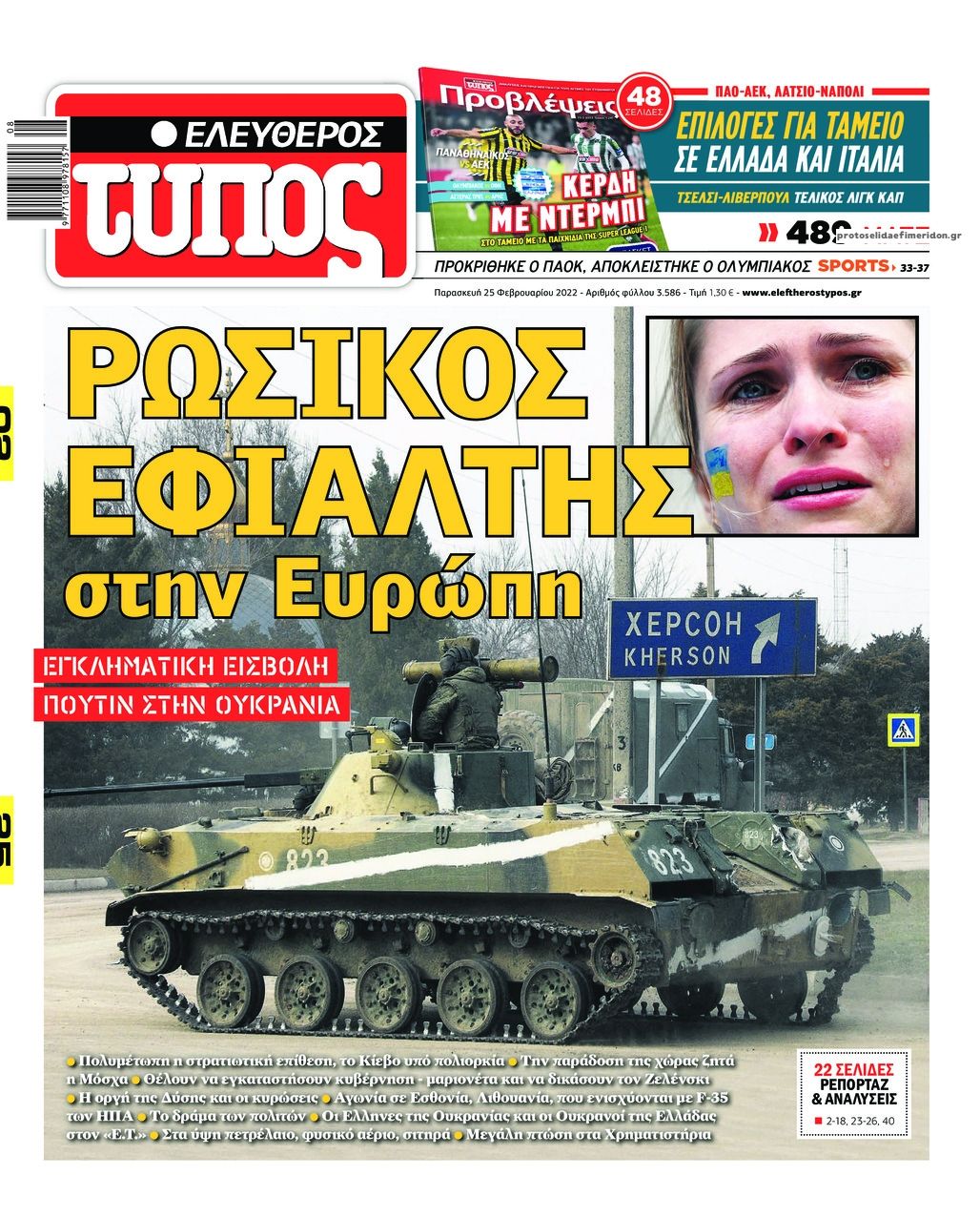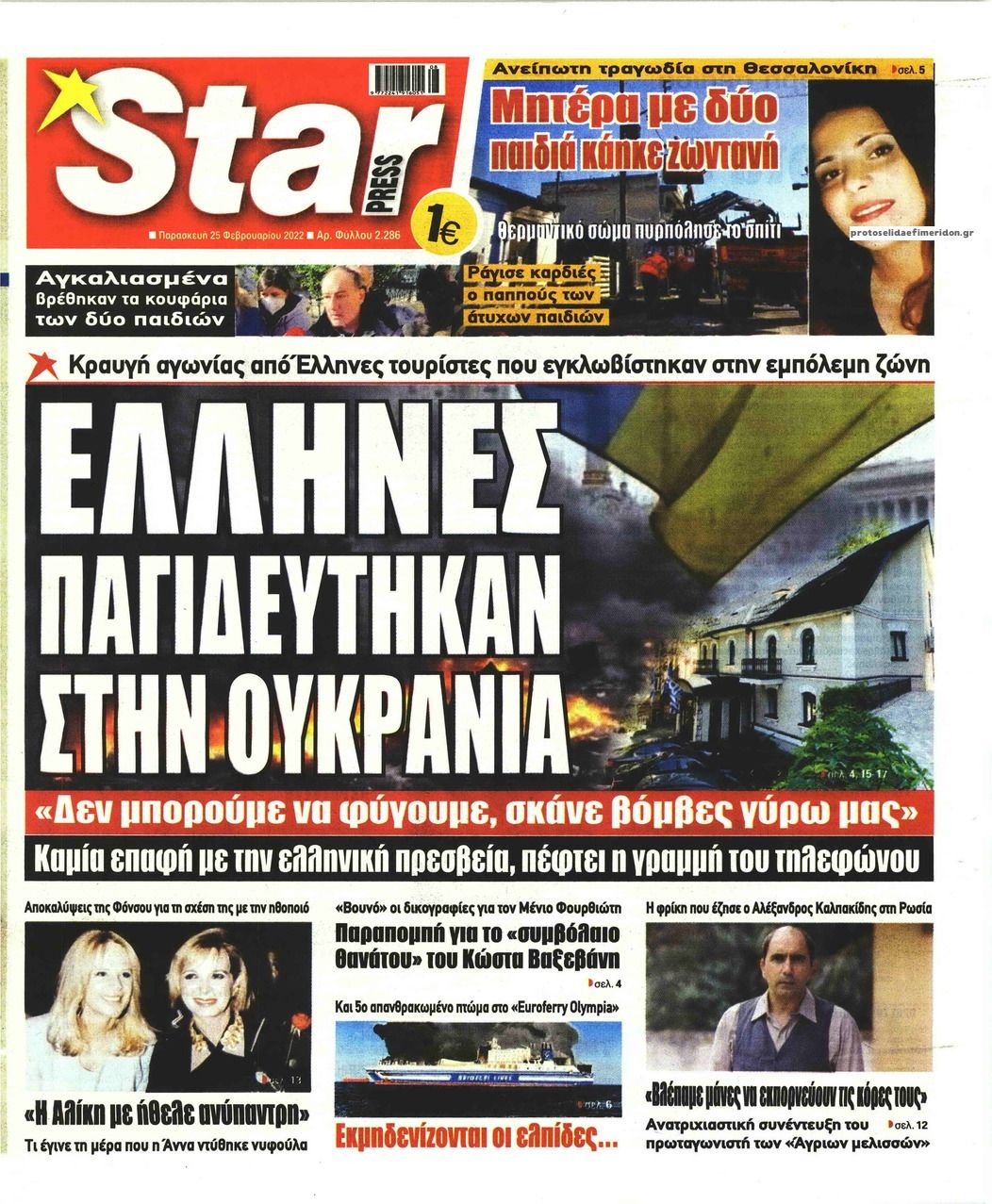 Οι εφημερίδες που κυκλοφορούν σήμερα Παρασκευή 25 Φεβρουαρίου 2022