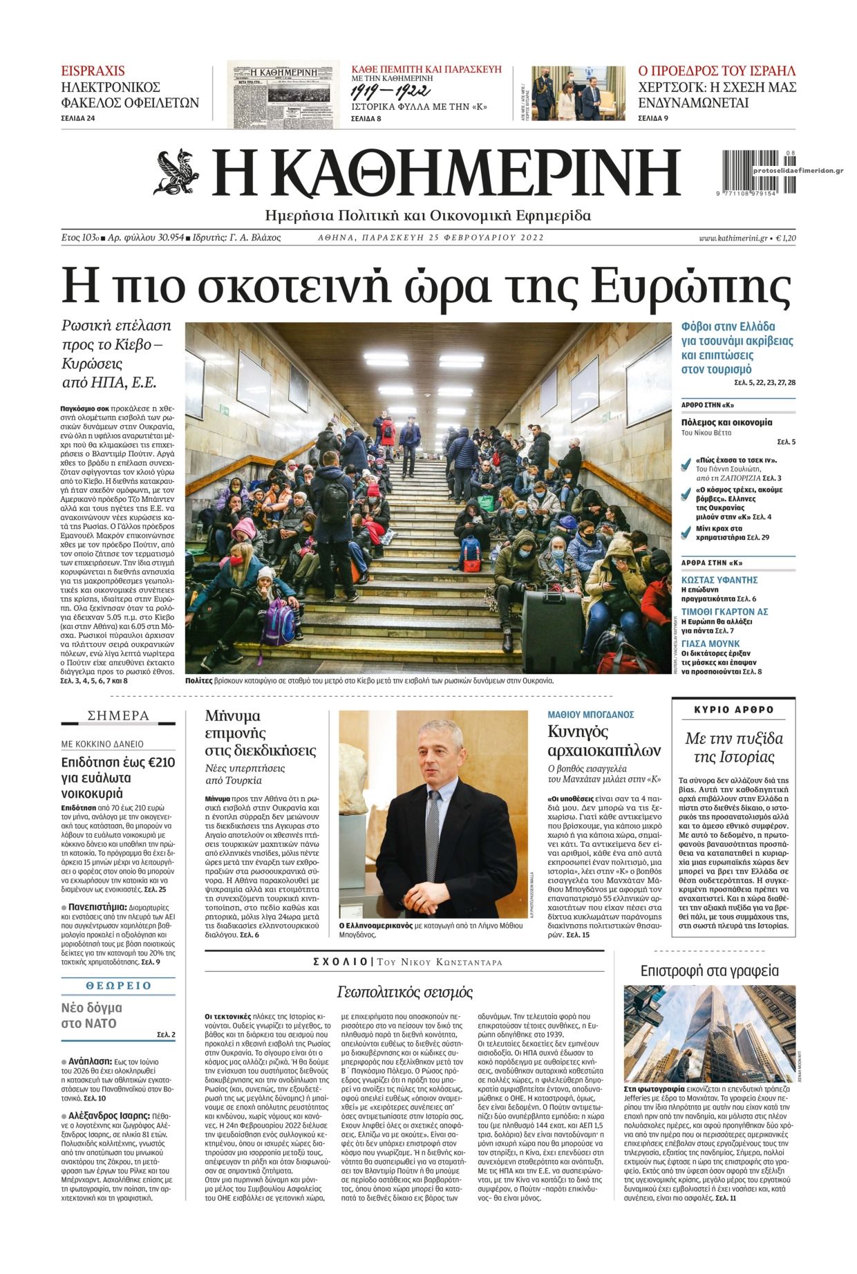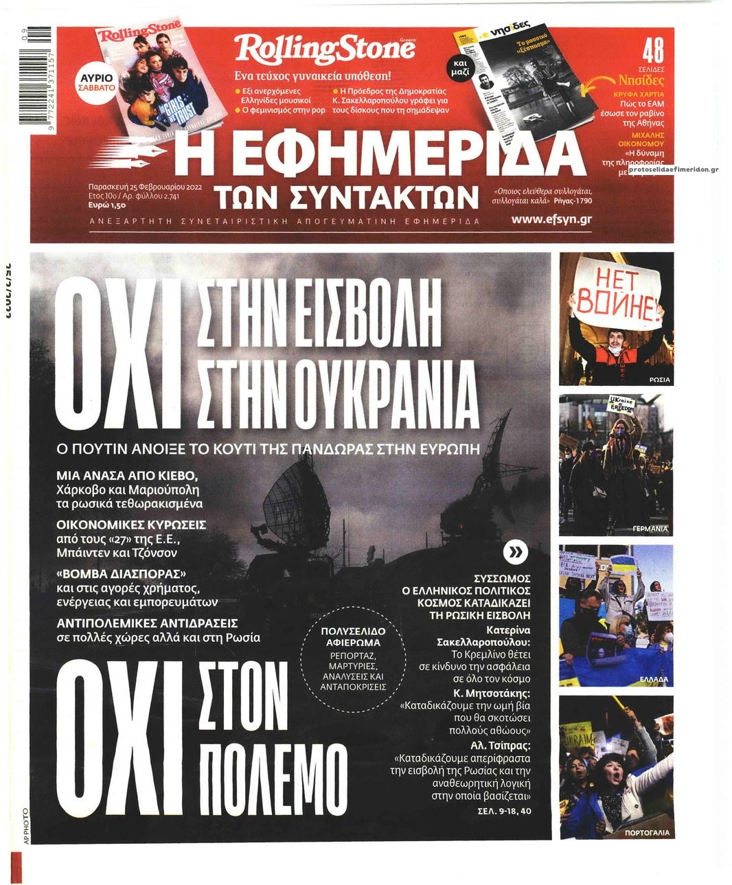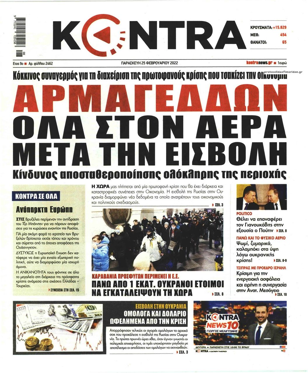 Οι εφημερίδες που κυκλοφορούν σήμερα Παρασκευή 25 Φεβρουαρίου 2022