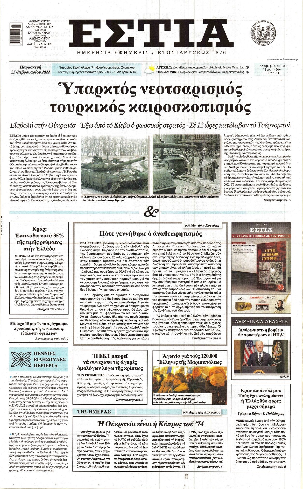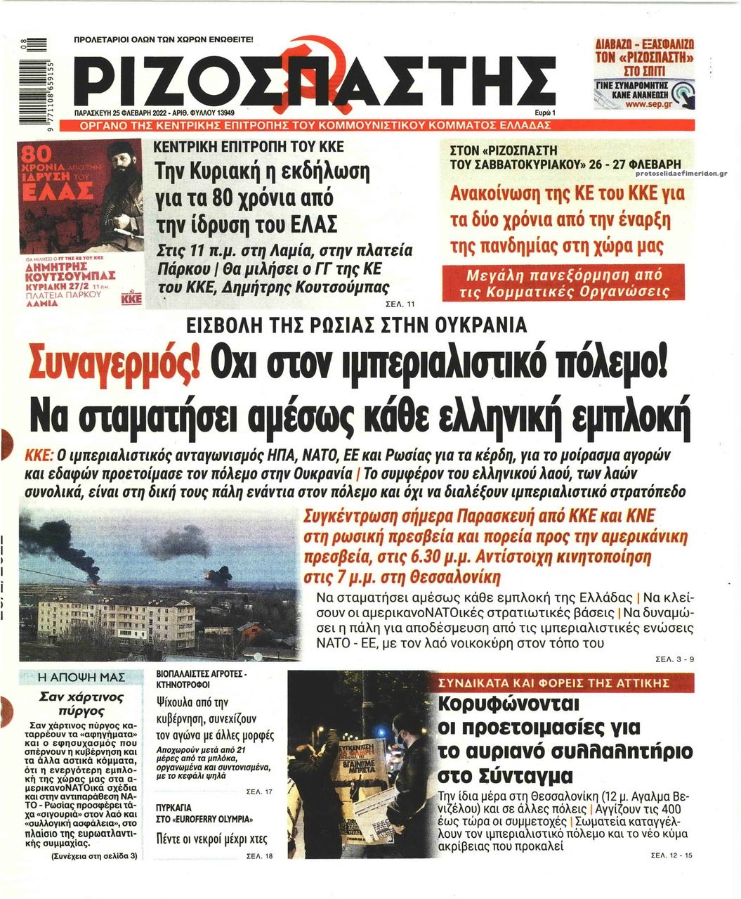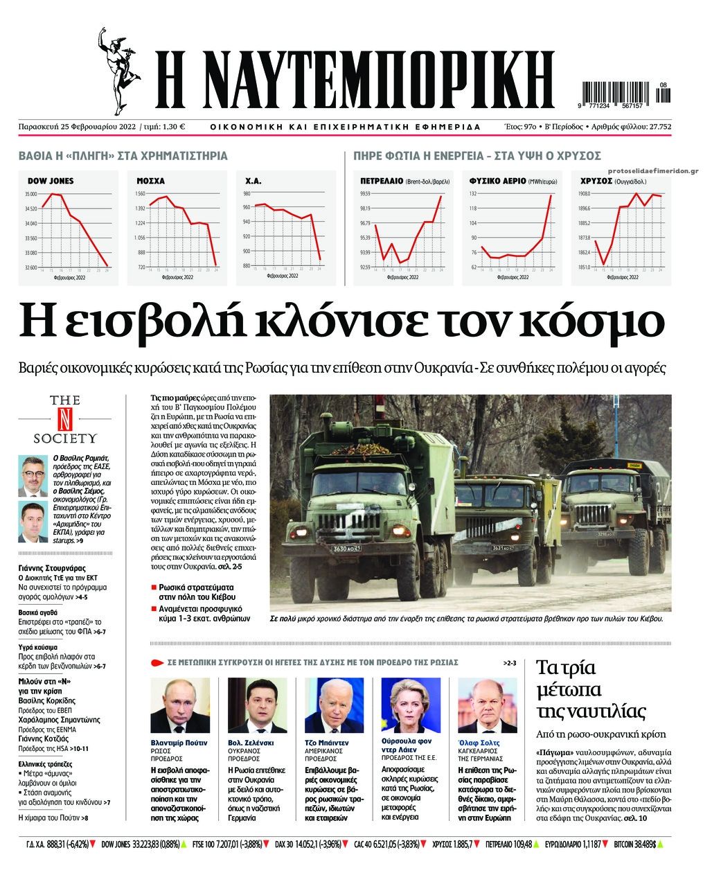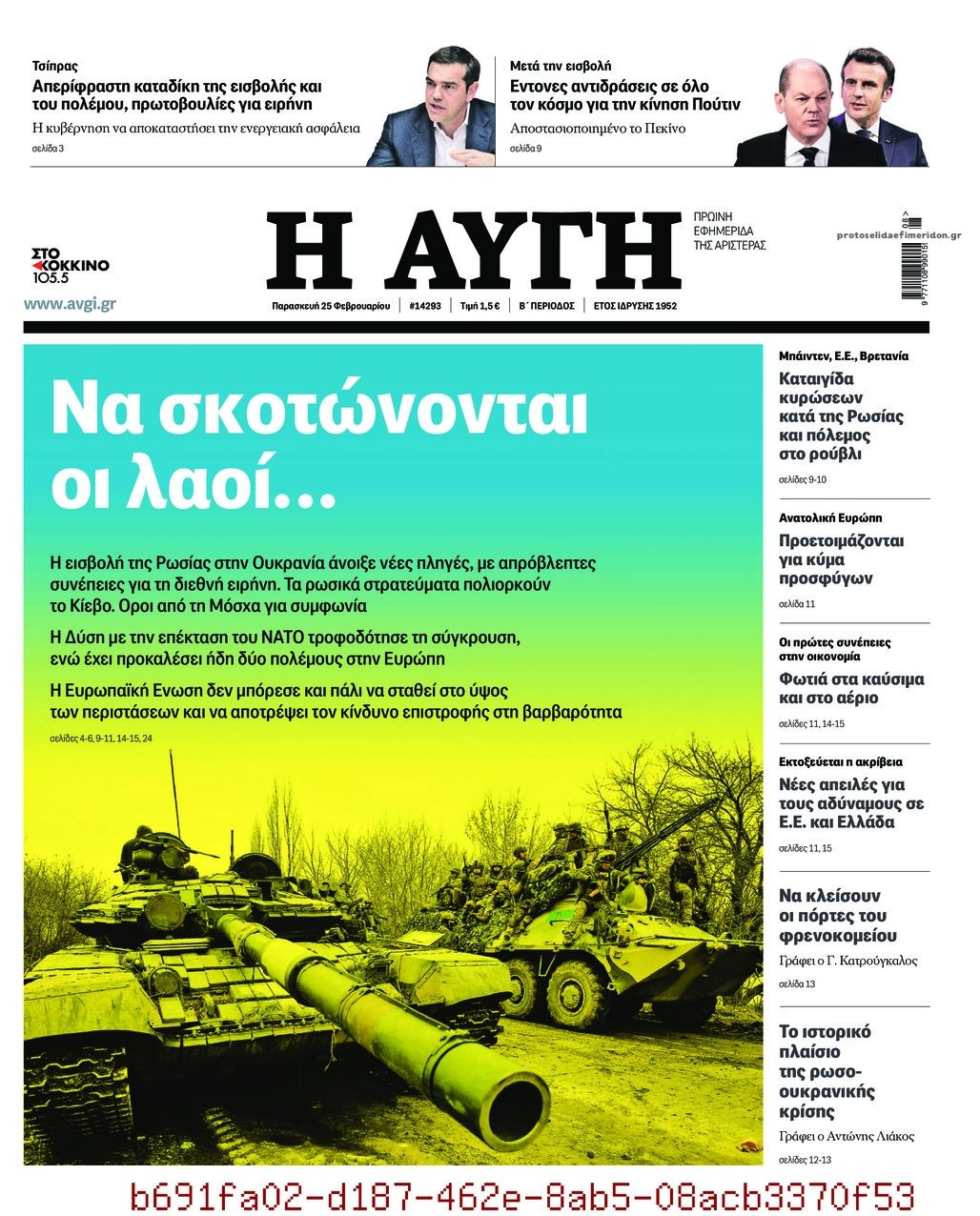 Οι εφημερίδες που κυκλοφορούν σήμερα Παρασκευή 25 Φεβρουαρίου 2022