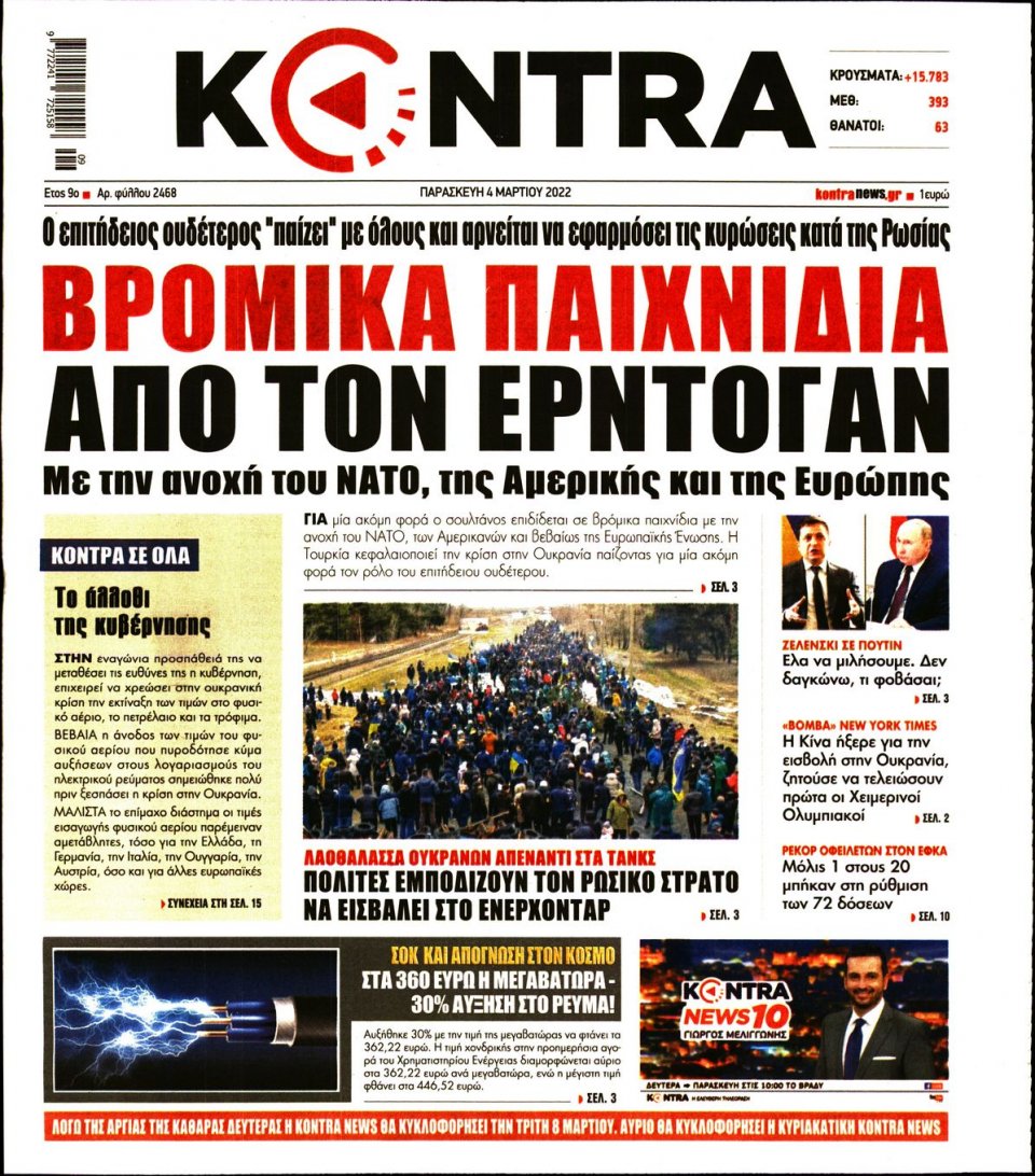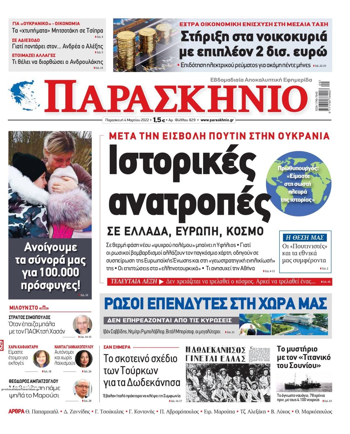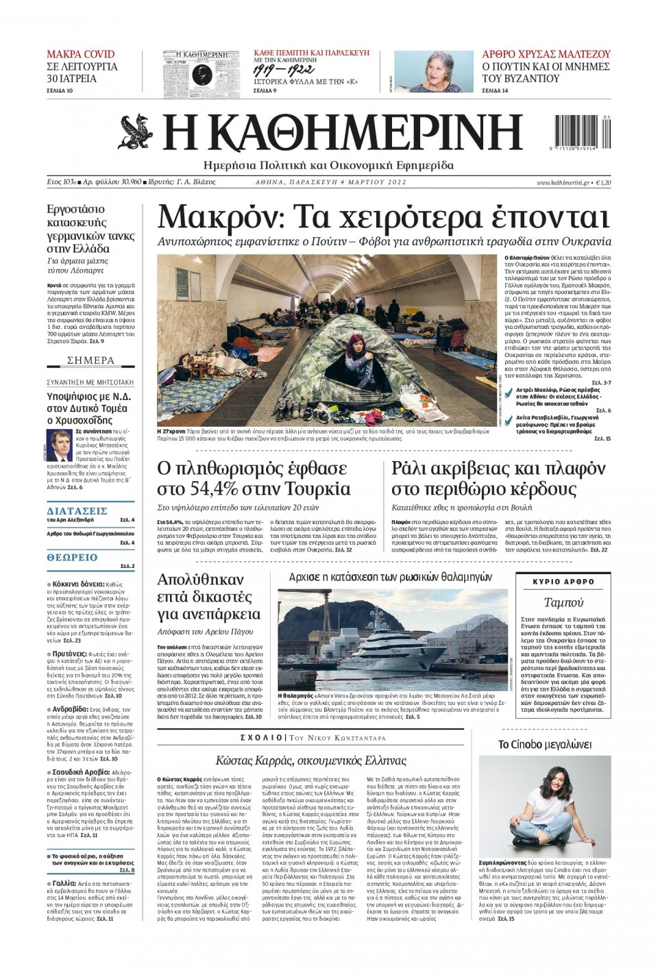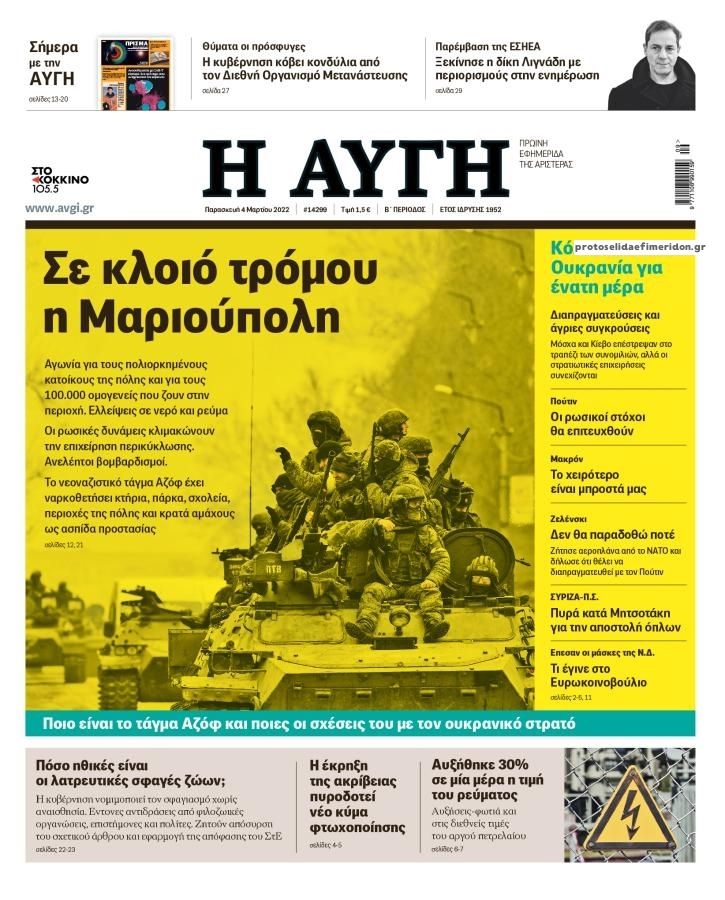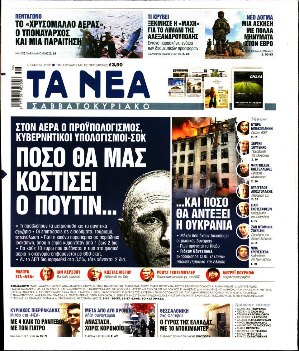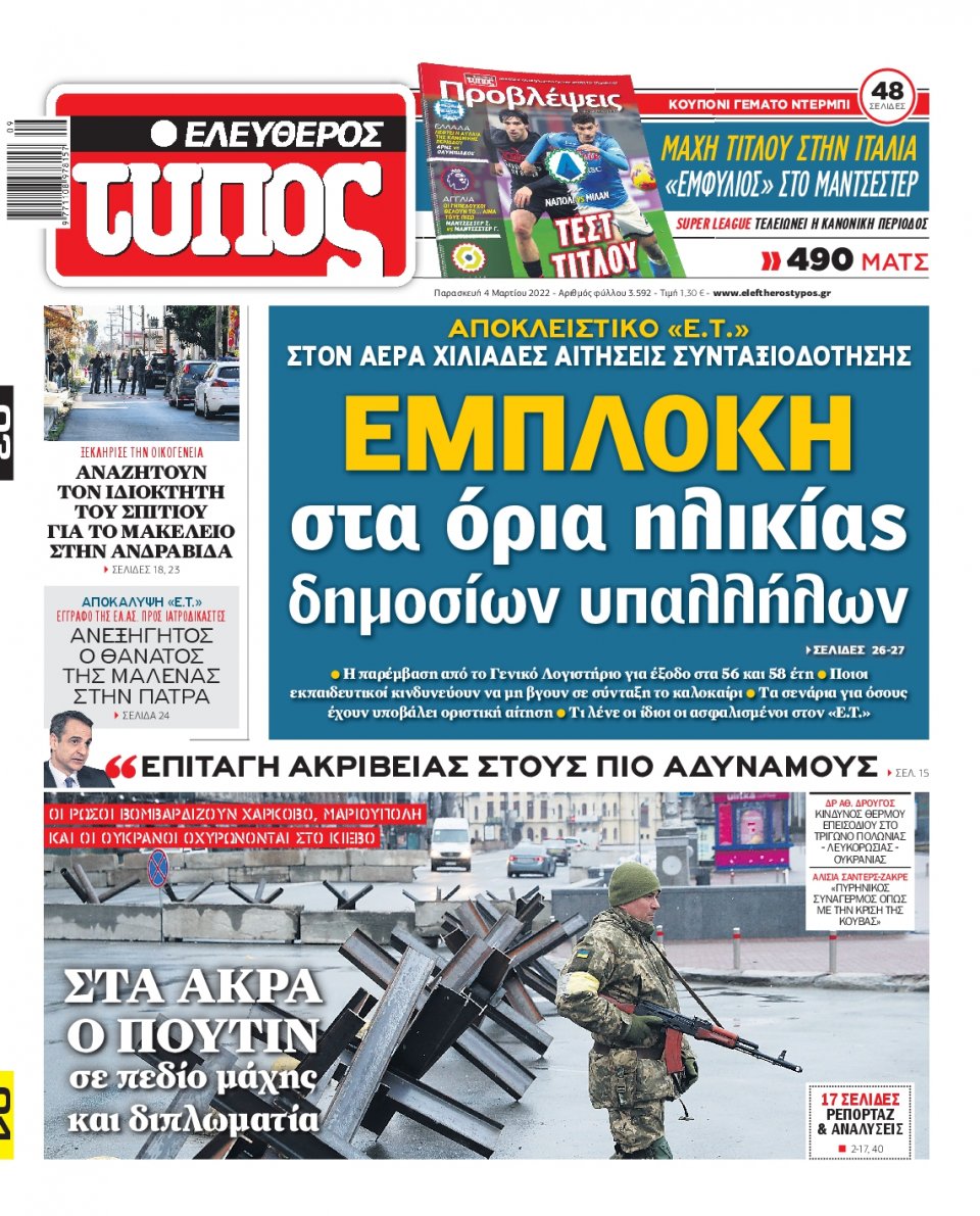 Οι εφημερίδες που κυκλοφορούν σήμερα Παρασκευή 4 Μαρτίου 2022