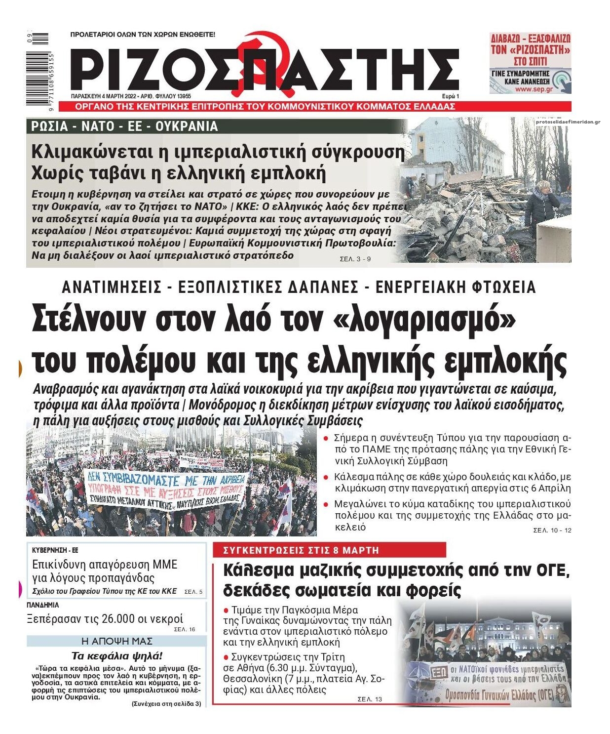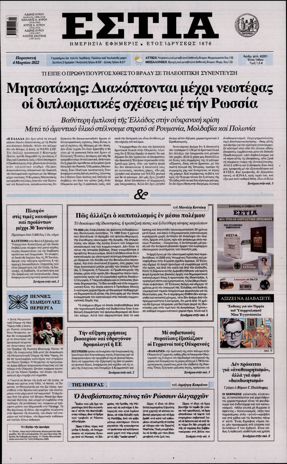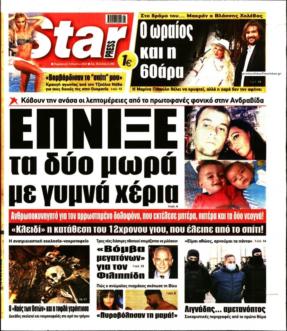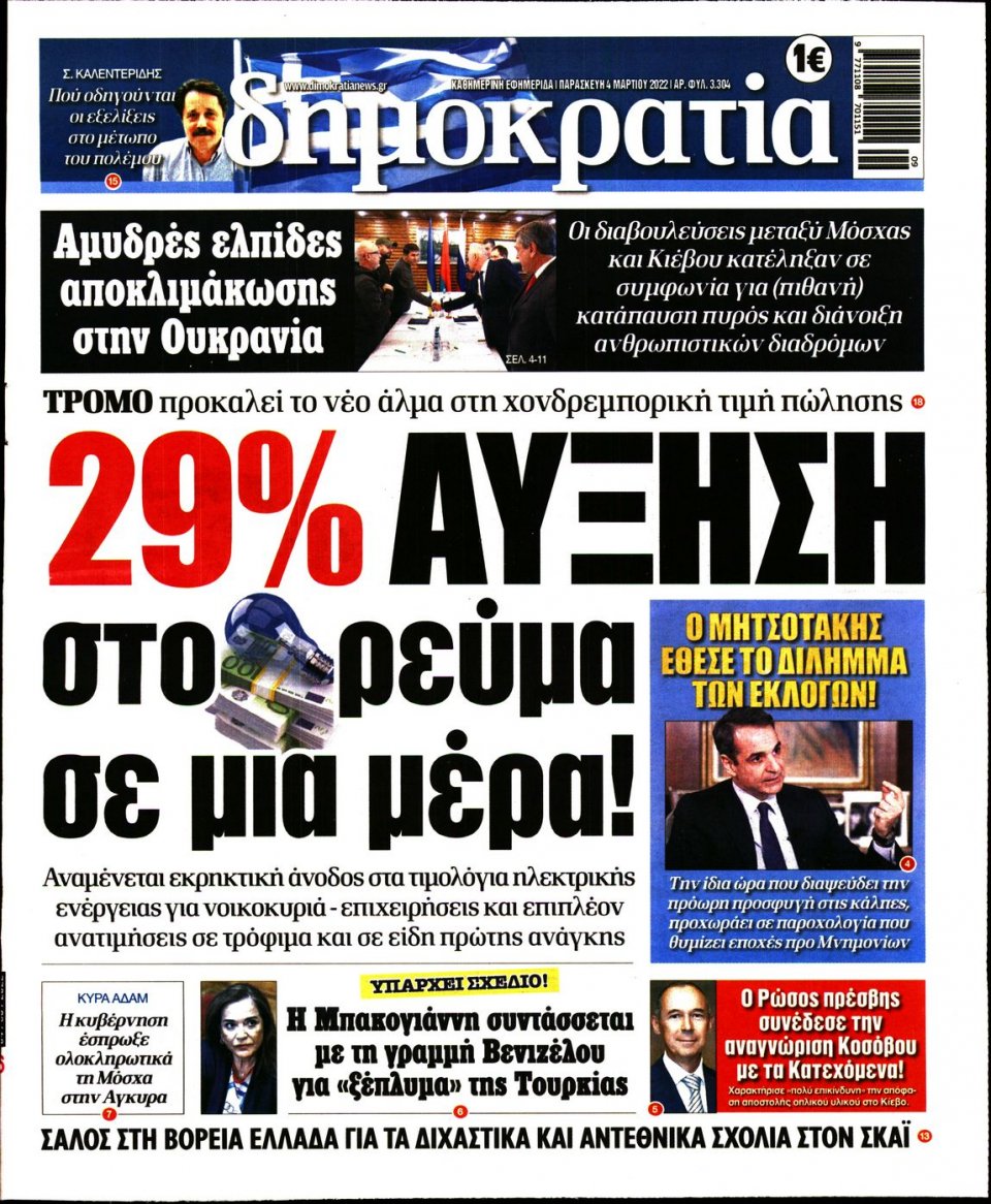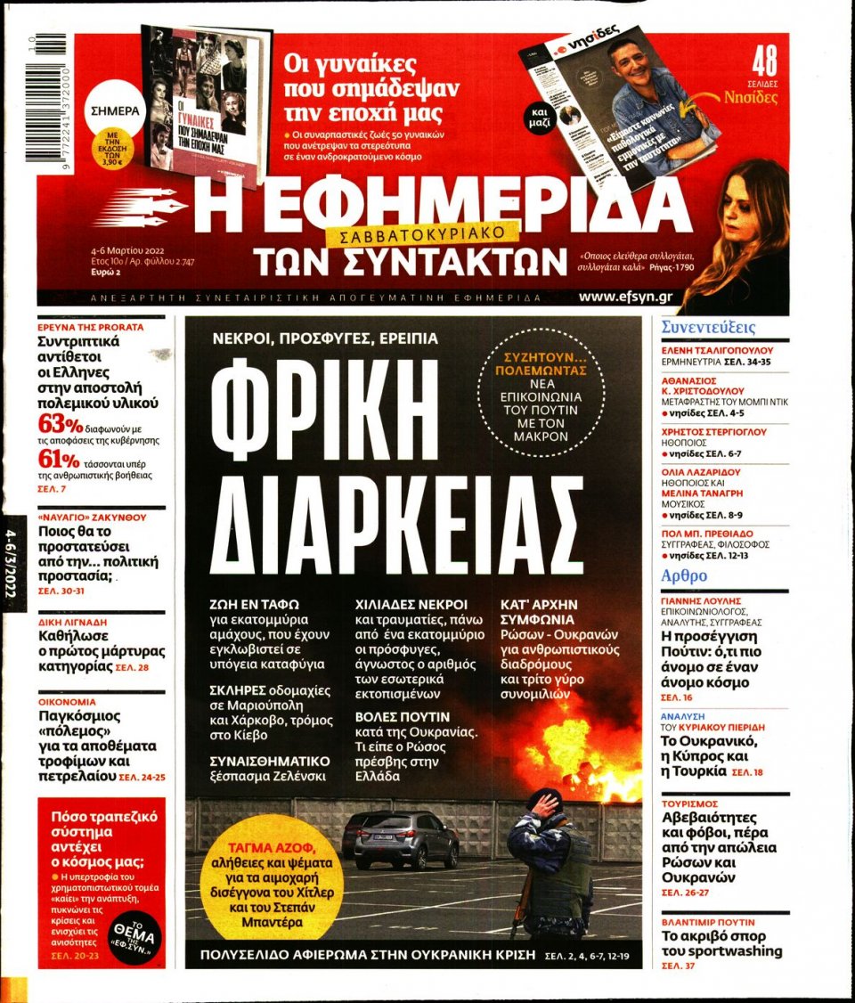 Οι εφημερίδες που κυκλοφορούν σήμερα Παρασκευή 4 Μαρτίου 2022