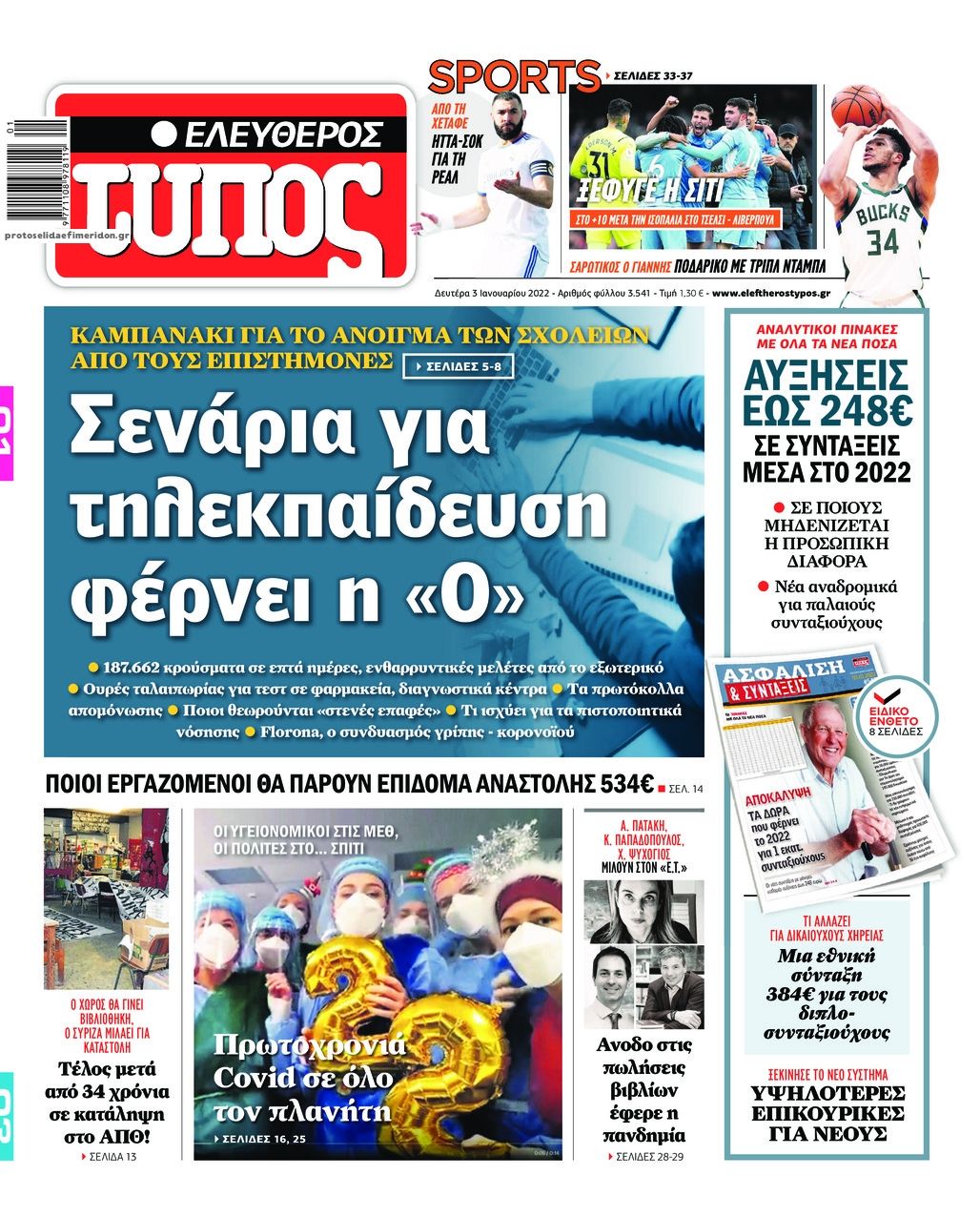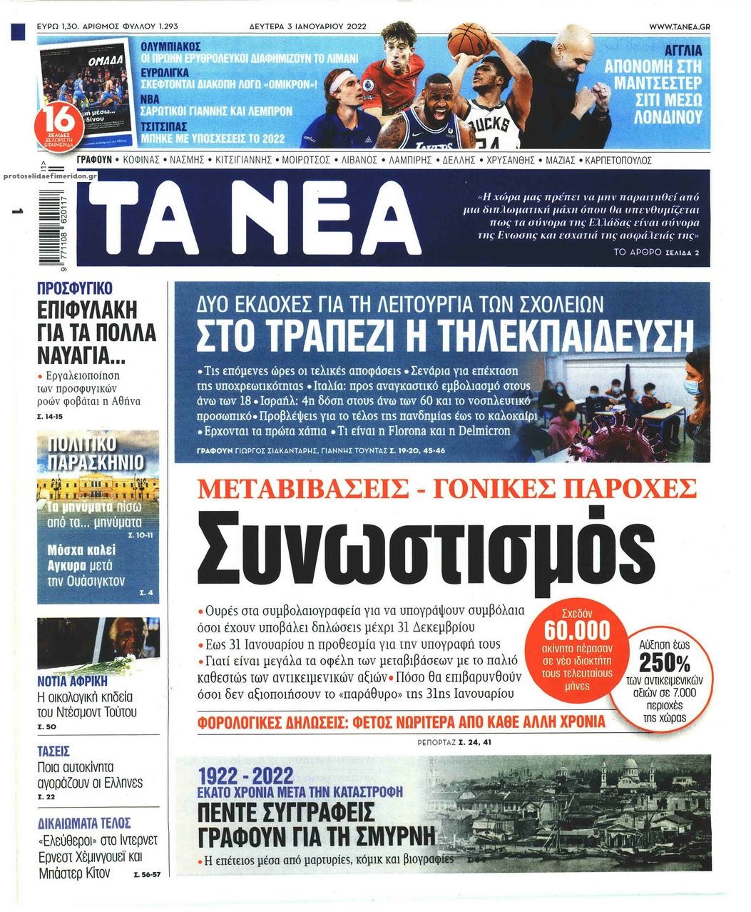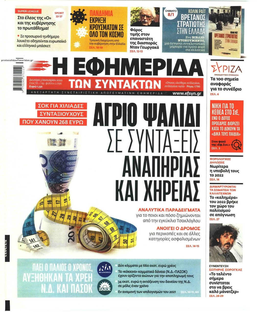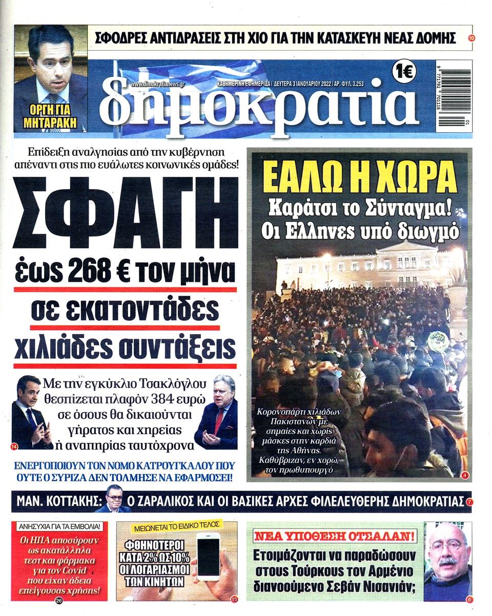 Οι εφημερίδες της Δευτέρας 3 Ιανουαρίου 2022
