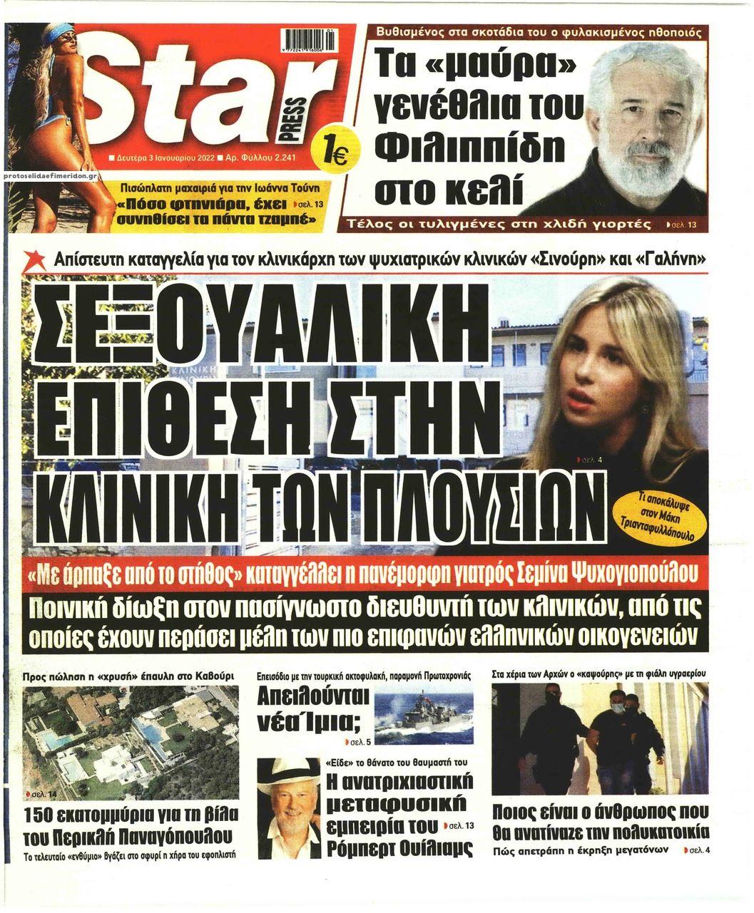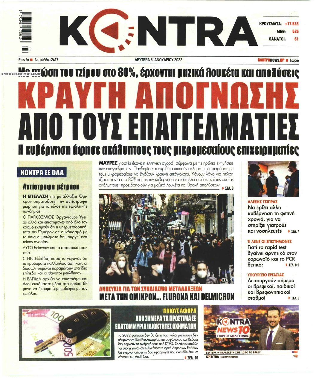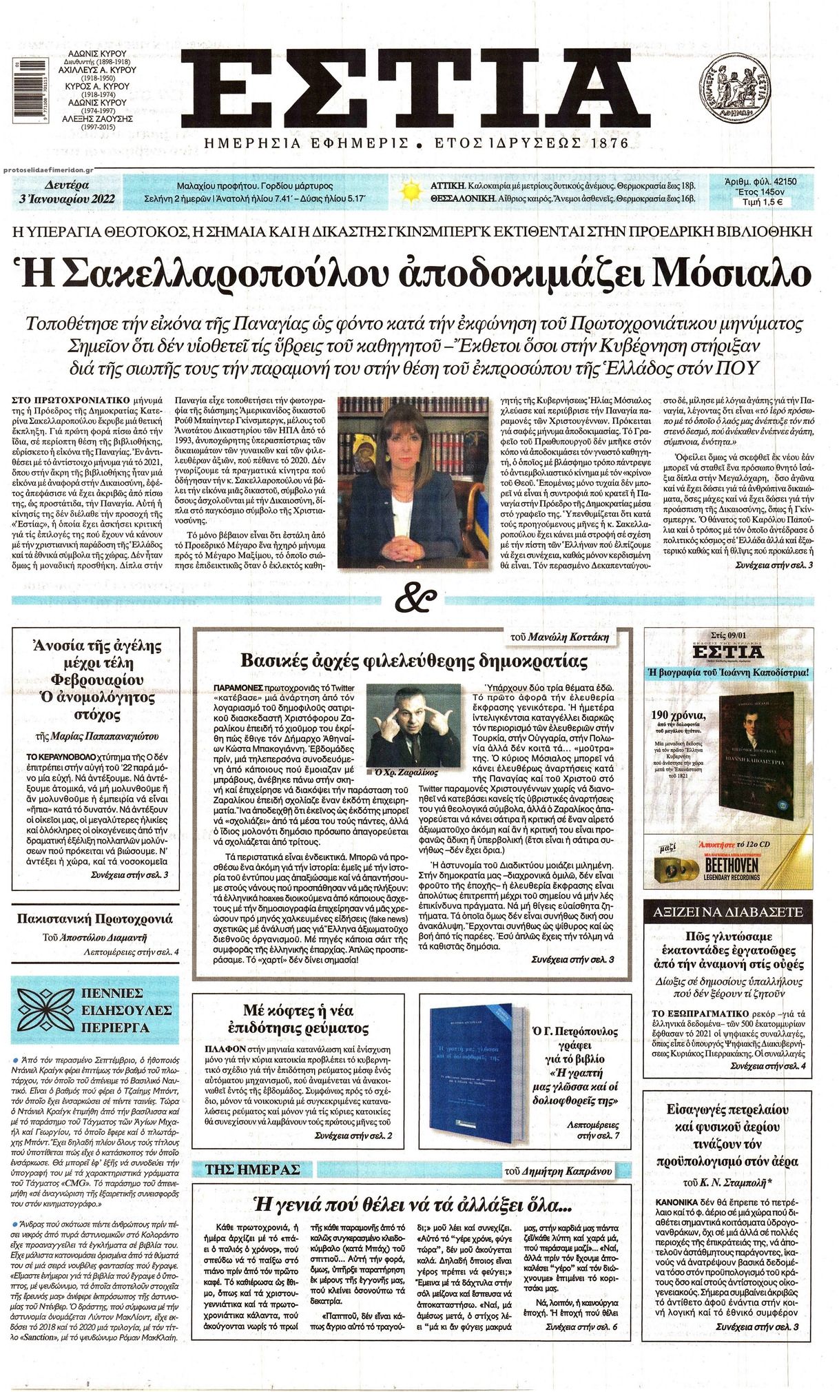 Οι εφημερίδες της Δευτέρας 3 Ιανουαρίου 2022
