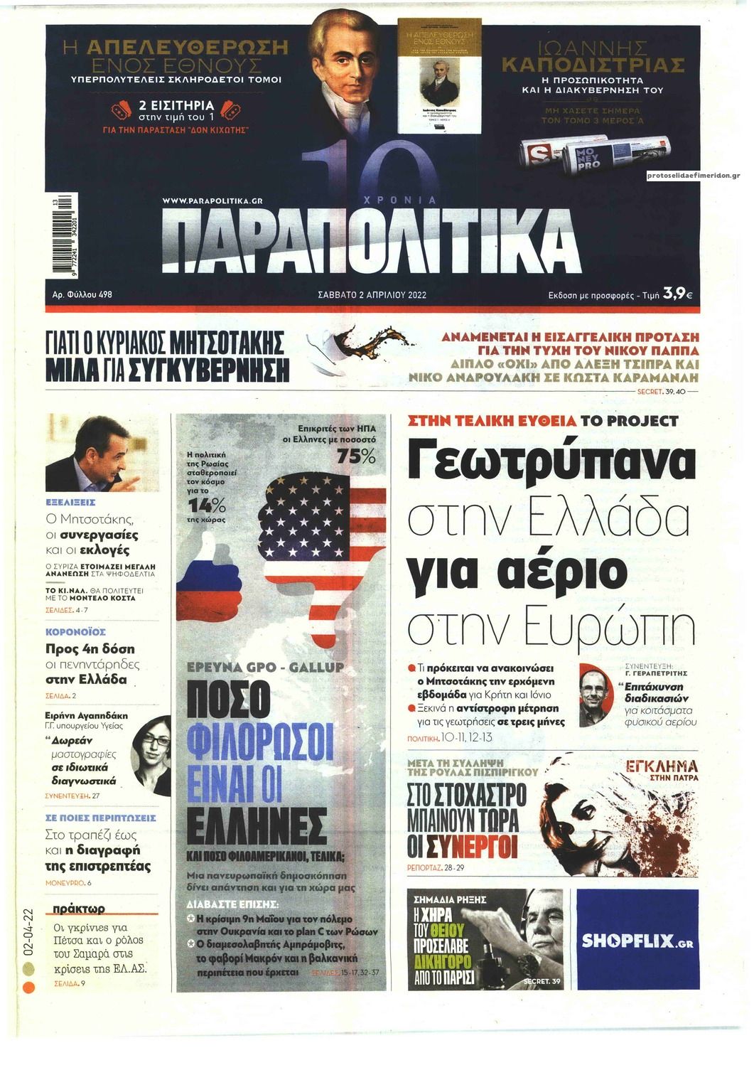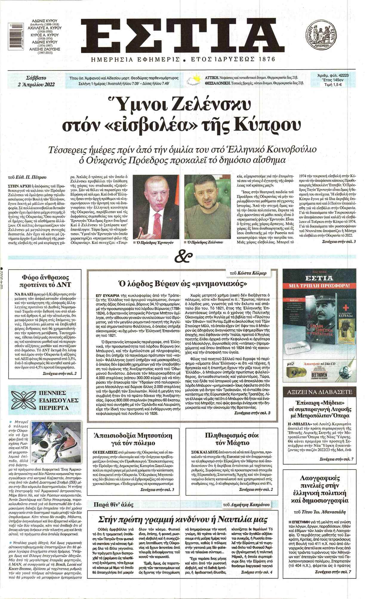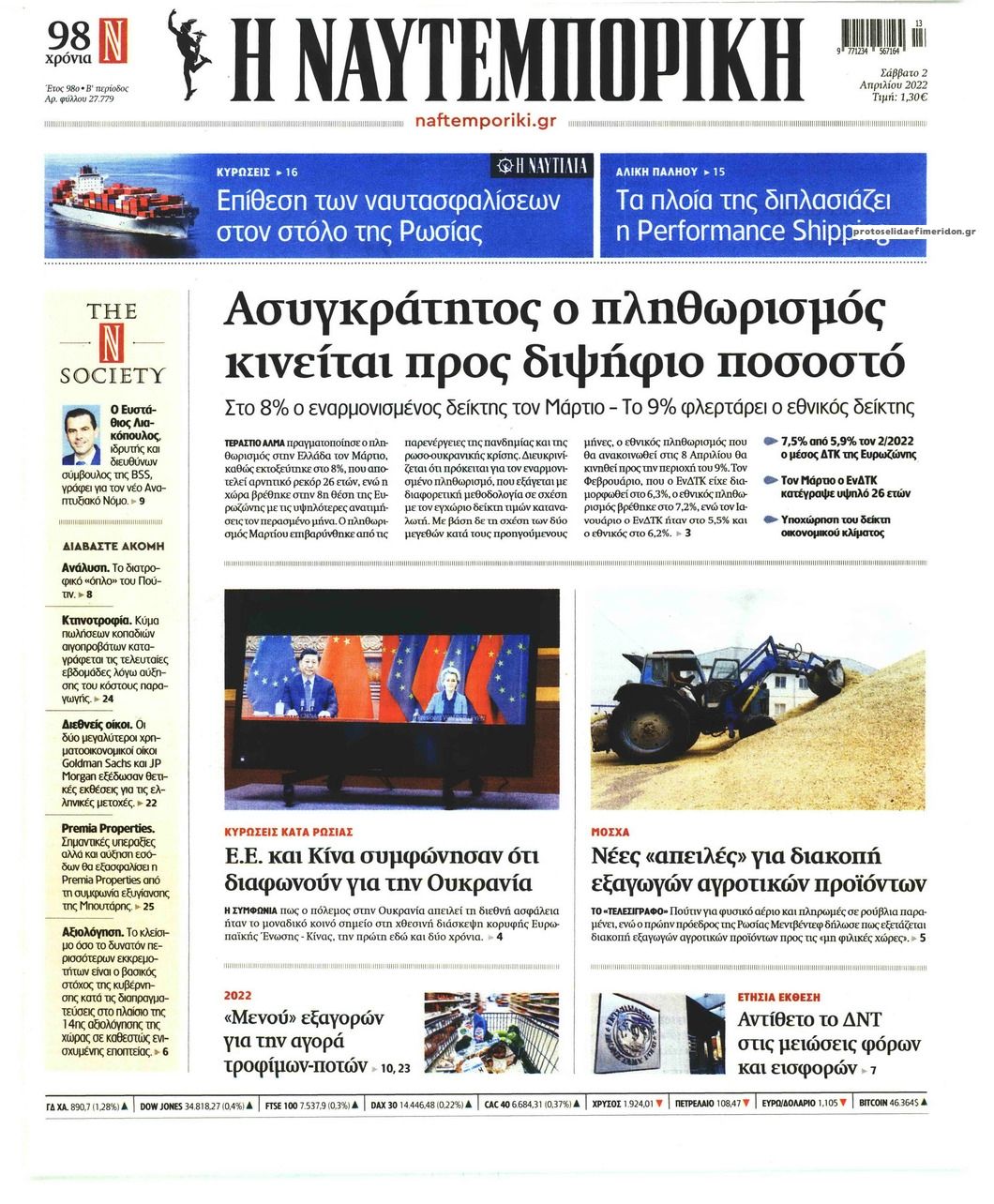 Οι εφημερίδες που κυκλοφορούν σήμερα Σάββατο 2 Απριλίου 2022