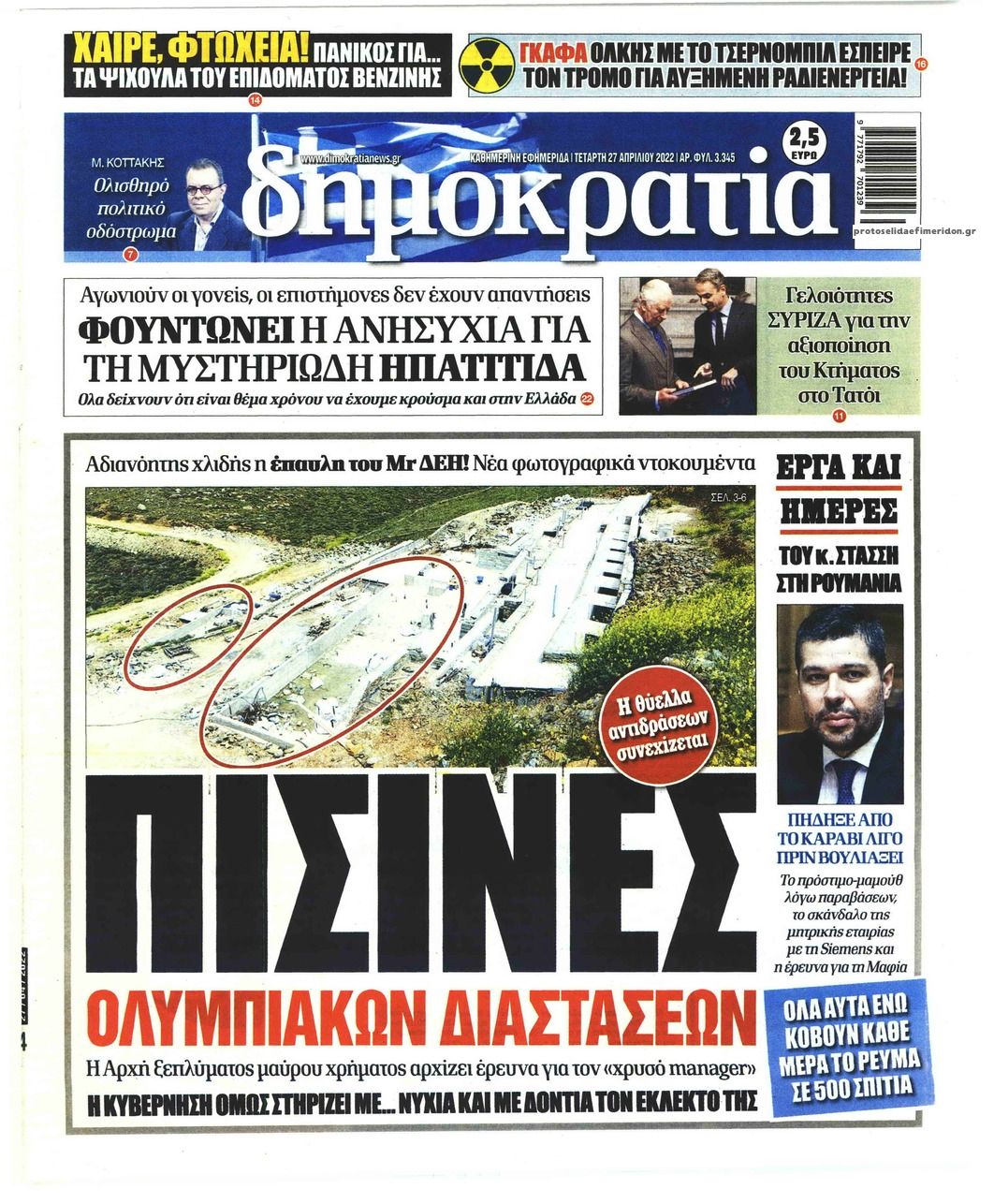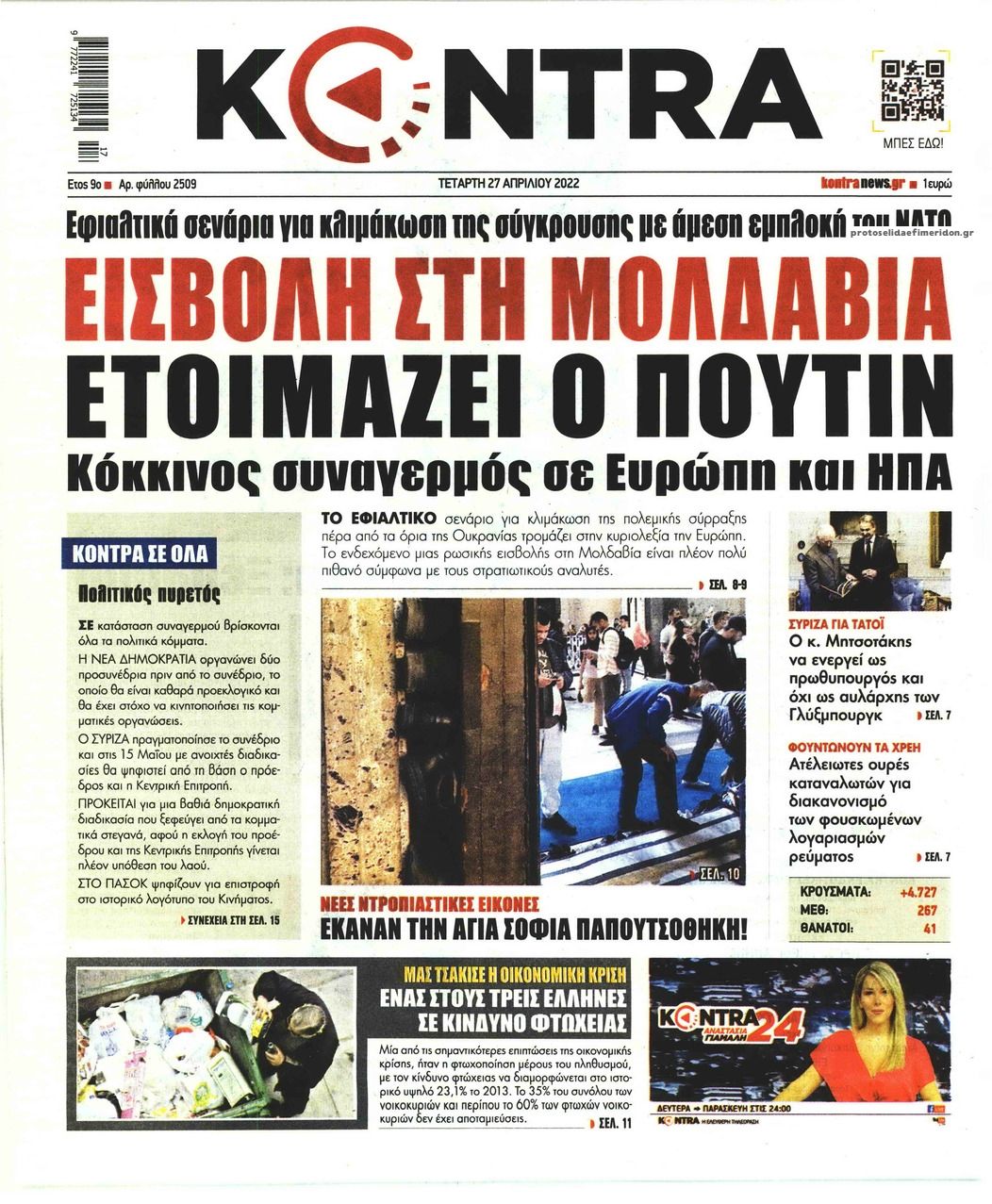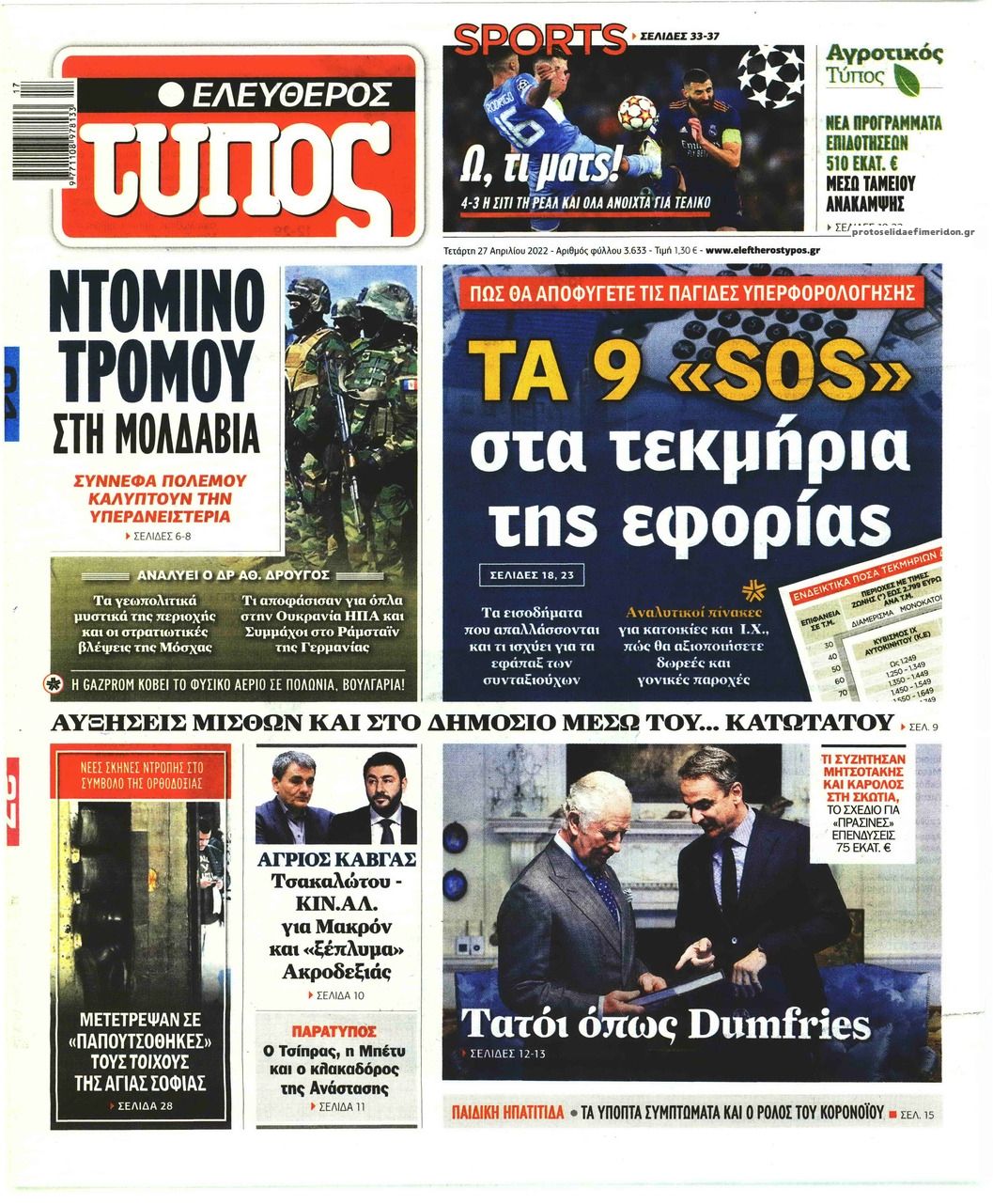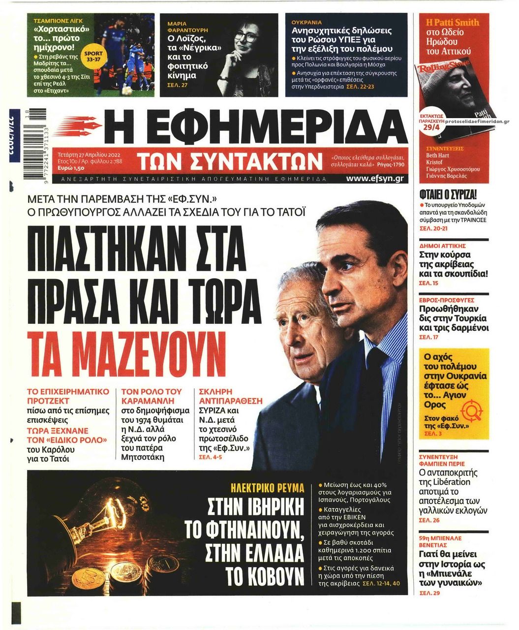 Οι εφημερίδες που κυκλοφορούν σήμερα Τετάρτη 27 Απριλίου