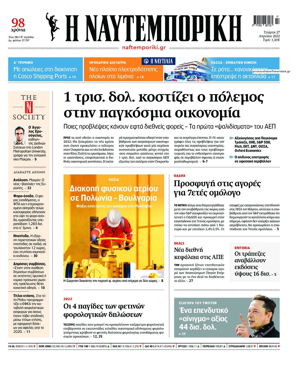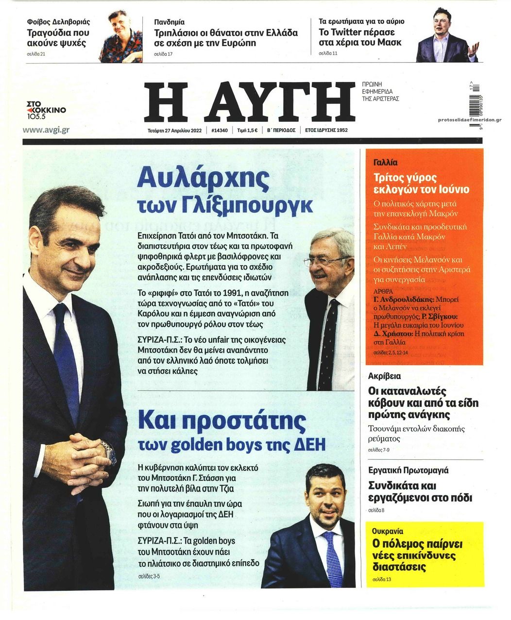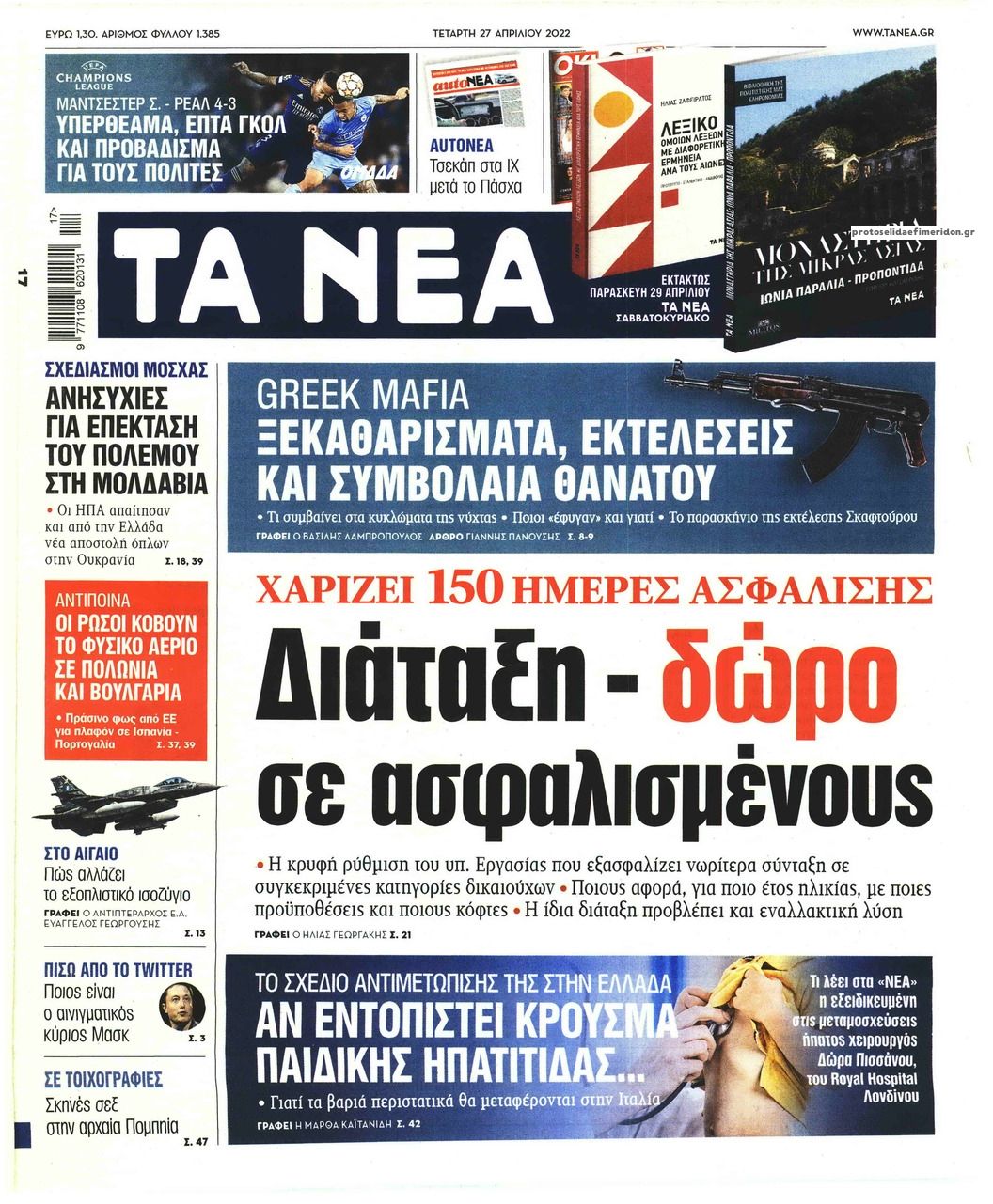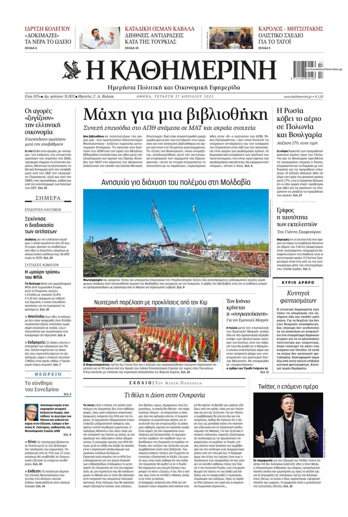 Οι εφημερίδες που κυκλοφορούν σήμερα Τετάρτη 27 Απριλίου