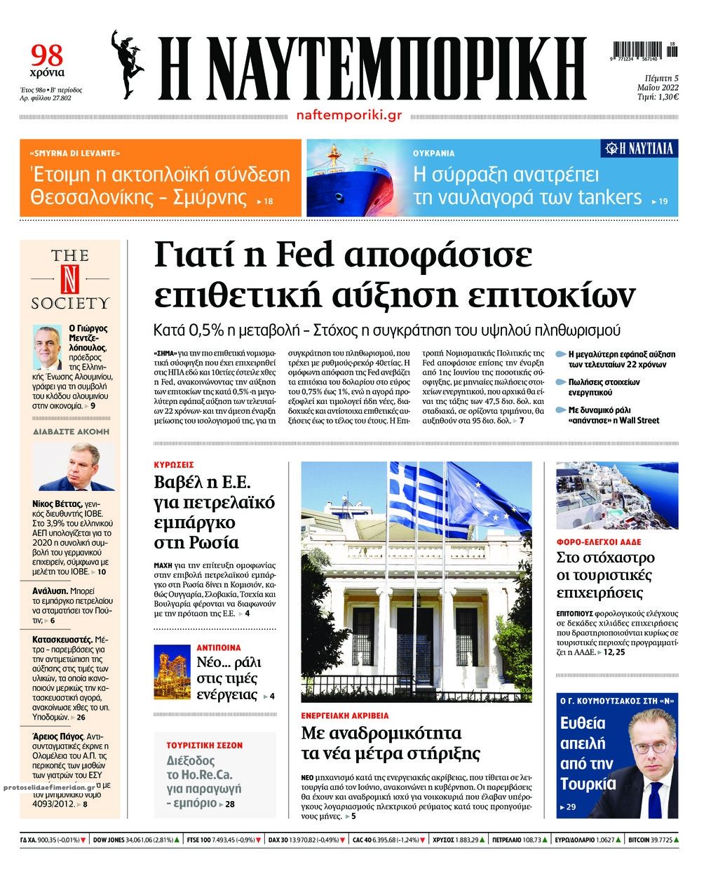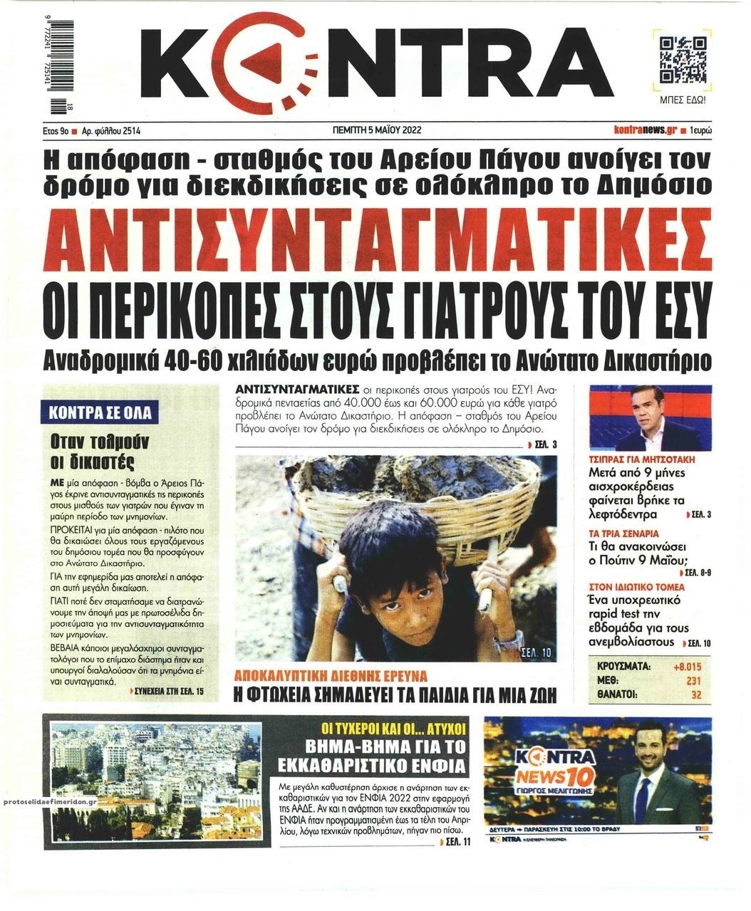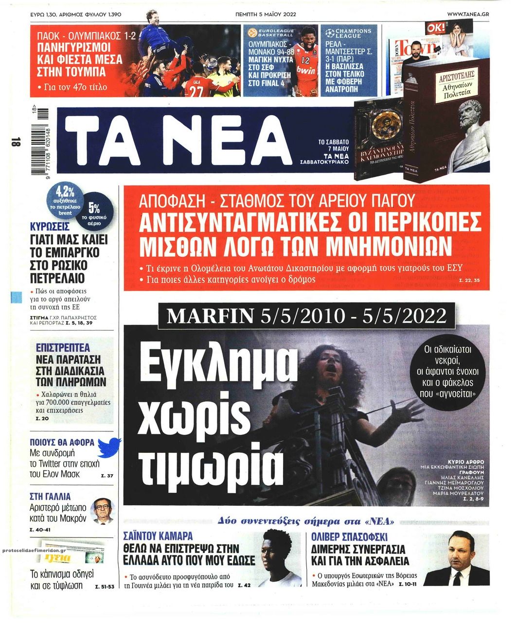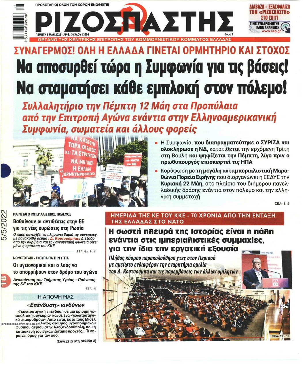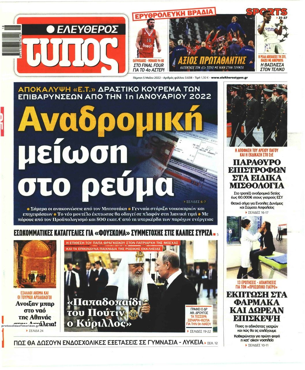 Οι εφημερίδες που κυκλοφορούν σήμερα Πέμπτη 5 Μαίου 2022