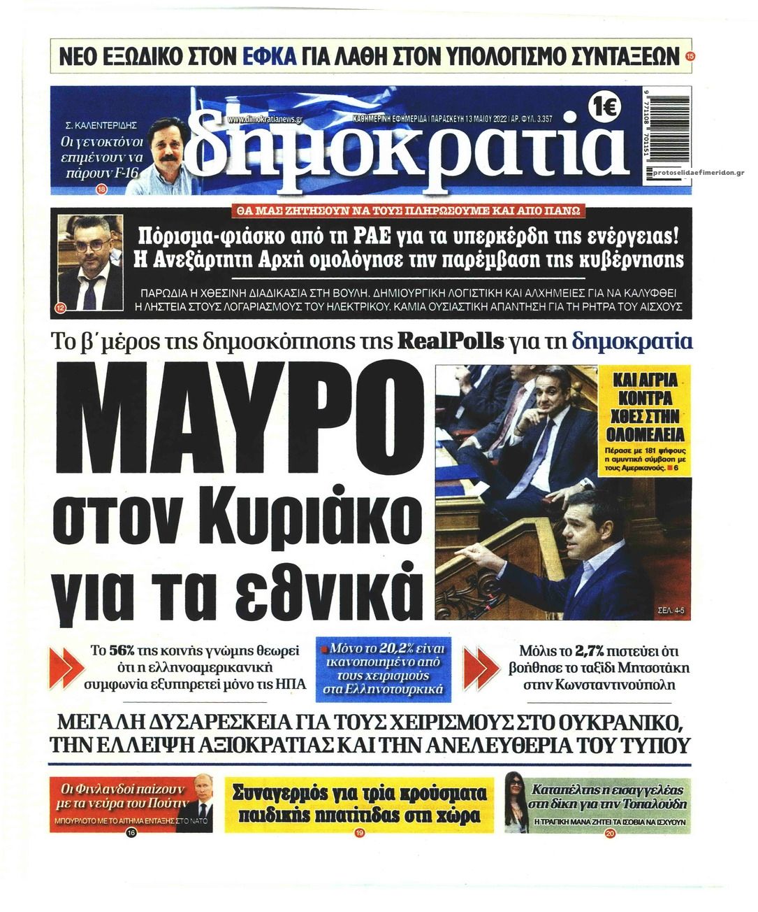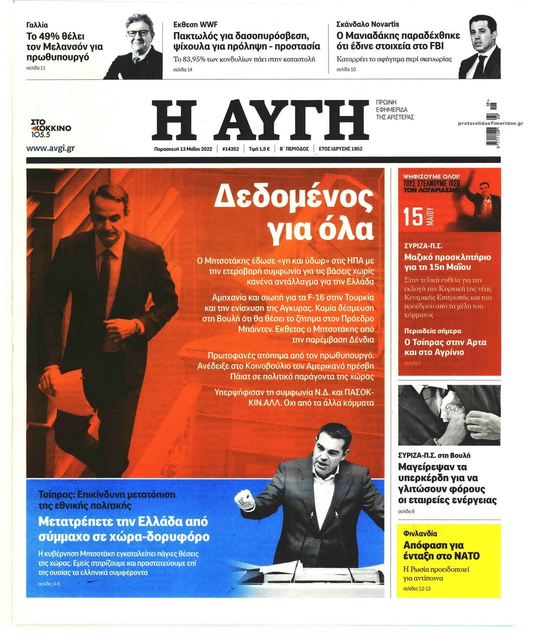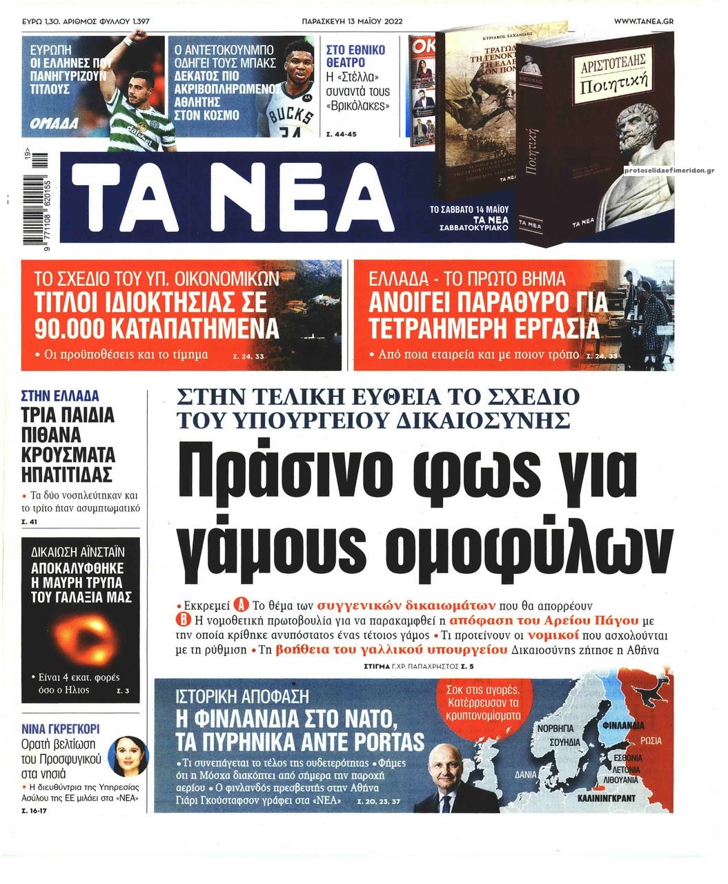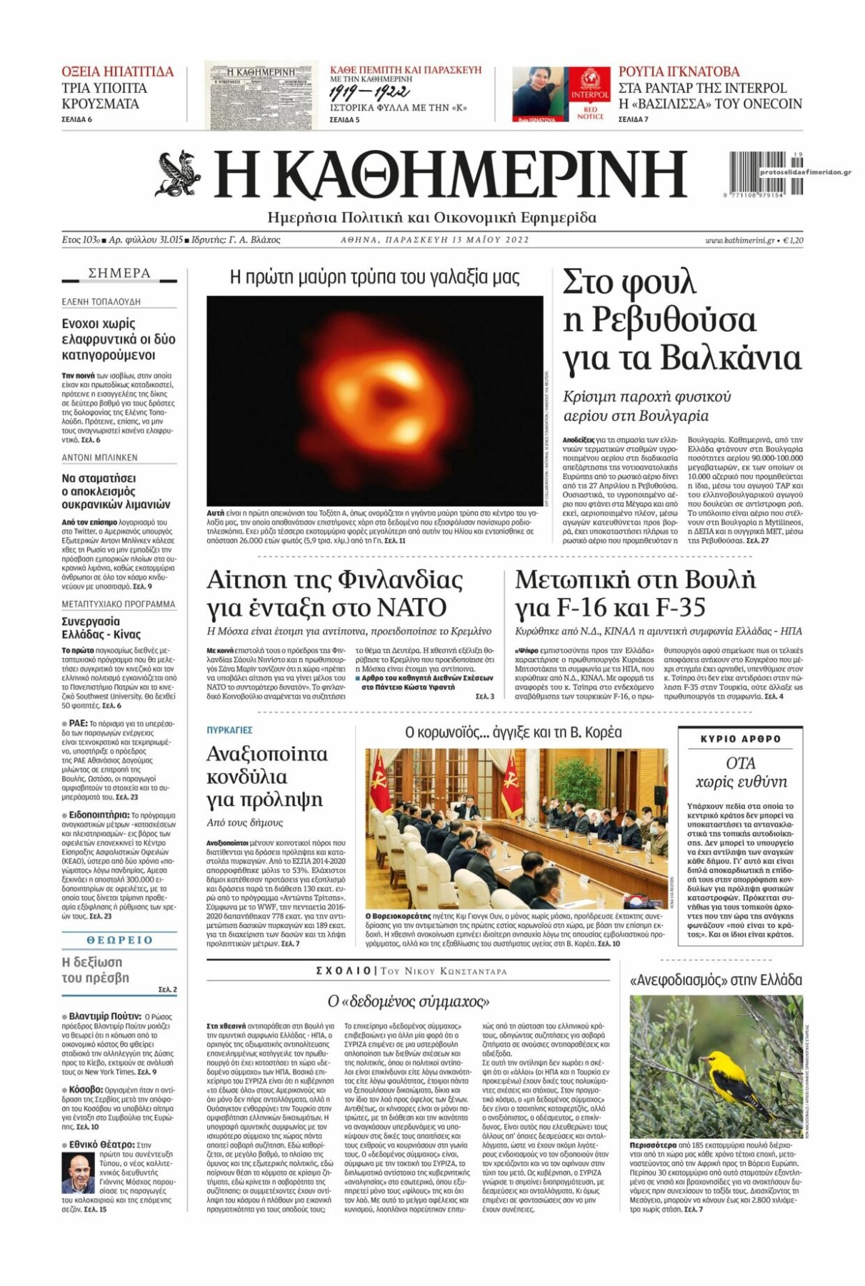 Οι εφημερίδες που κυκλοφορούν σήμερα Παρασκευή 13 Μαϊου 2022