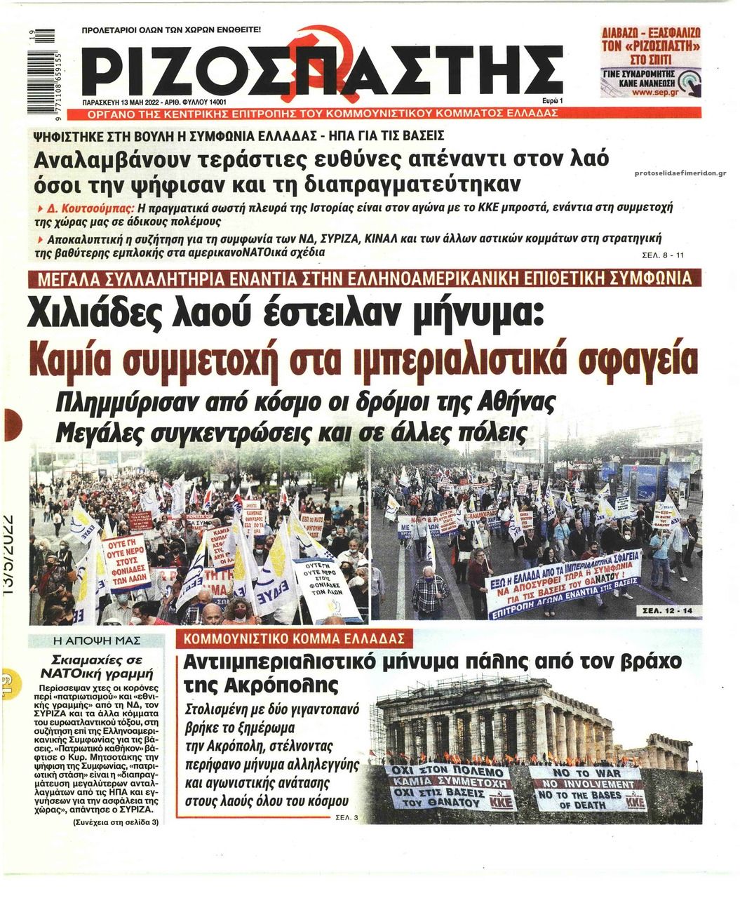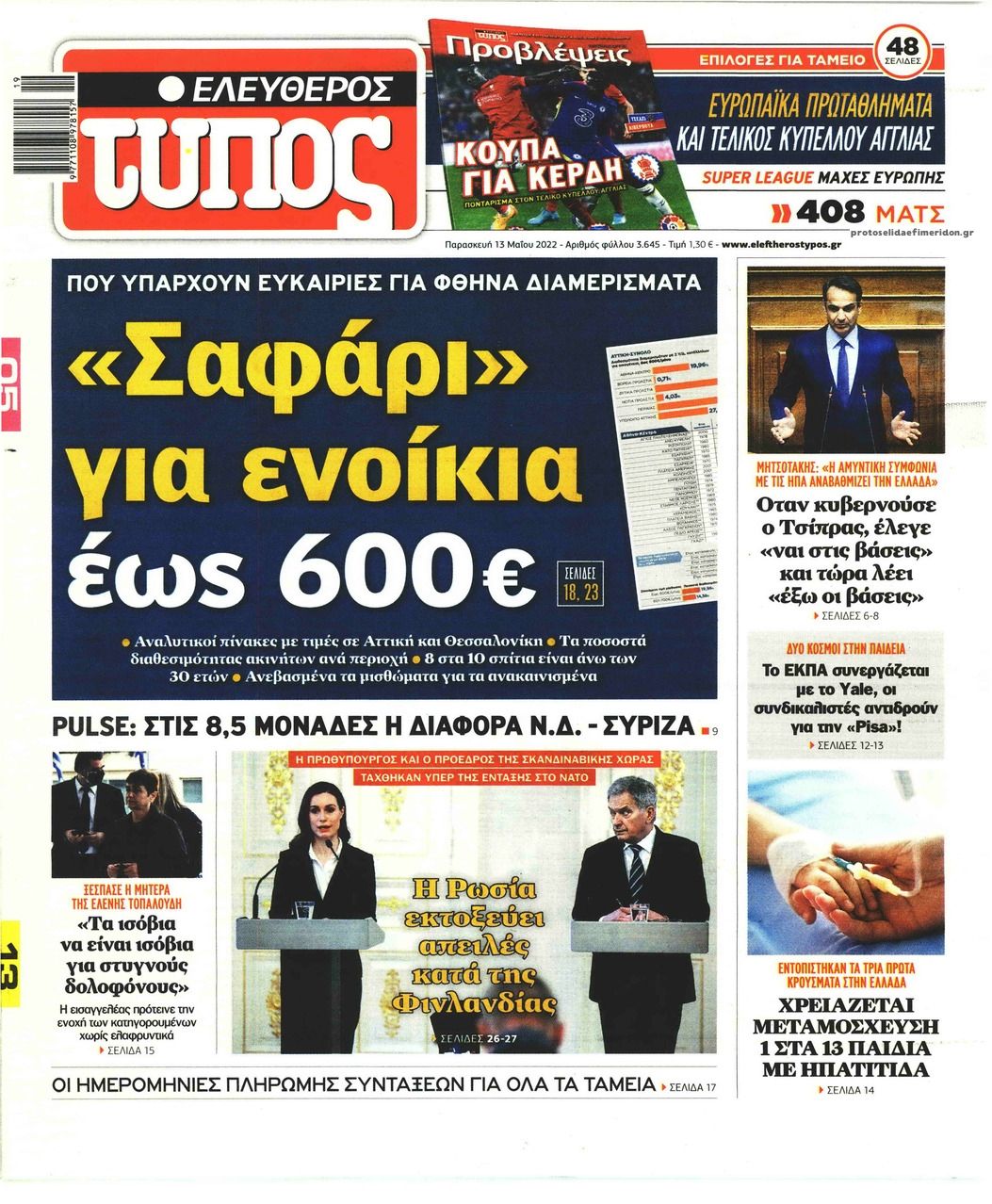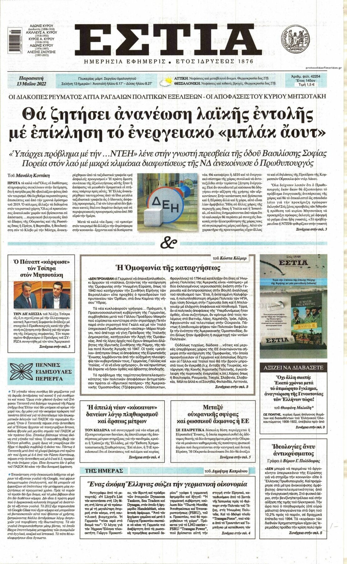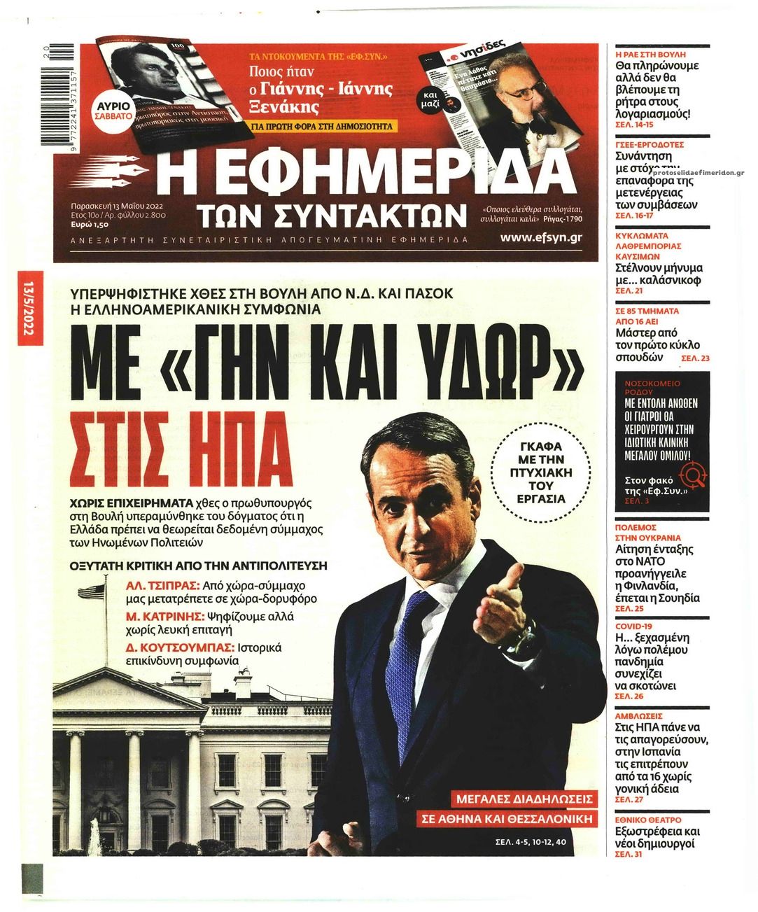 Οι εφημερίδες που κυκλοφορούν σήμερα Παρασκευή 13 Μαϊου 2022