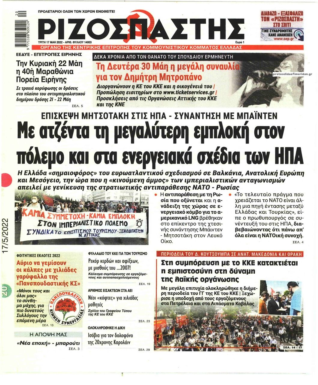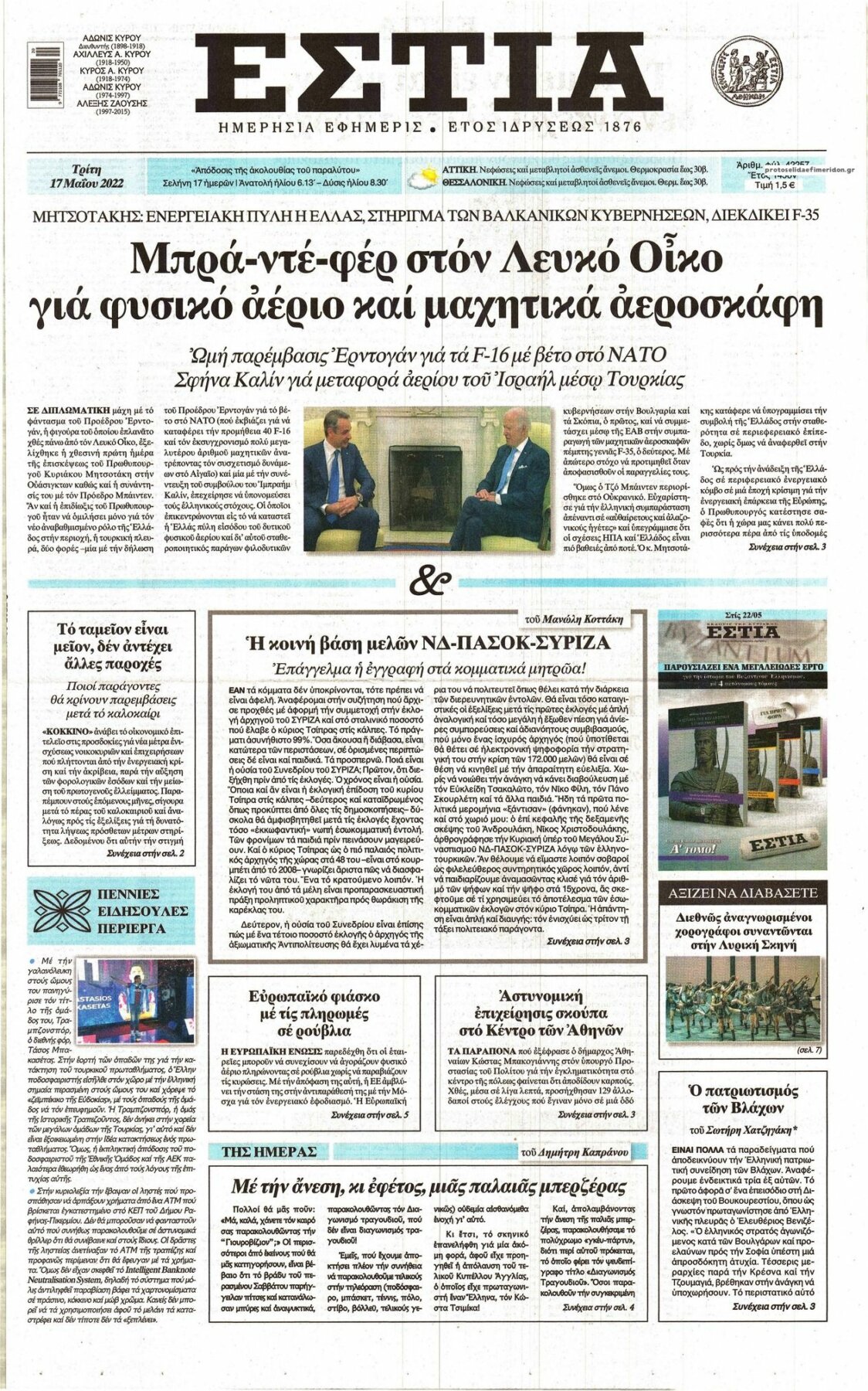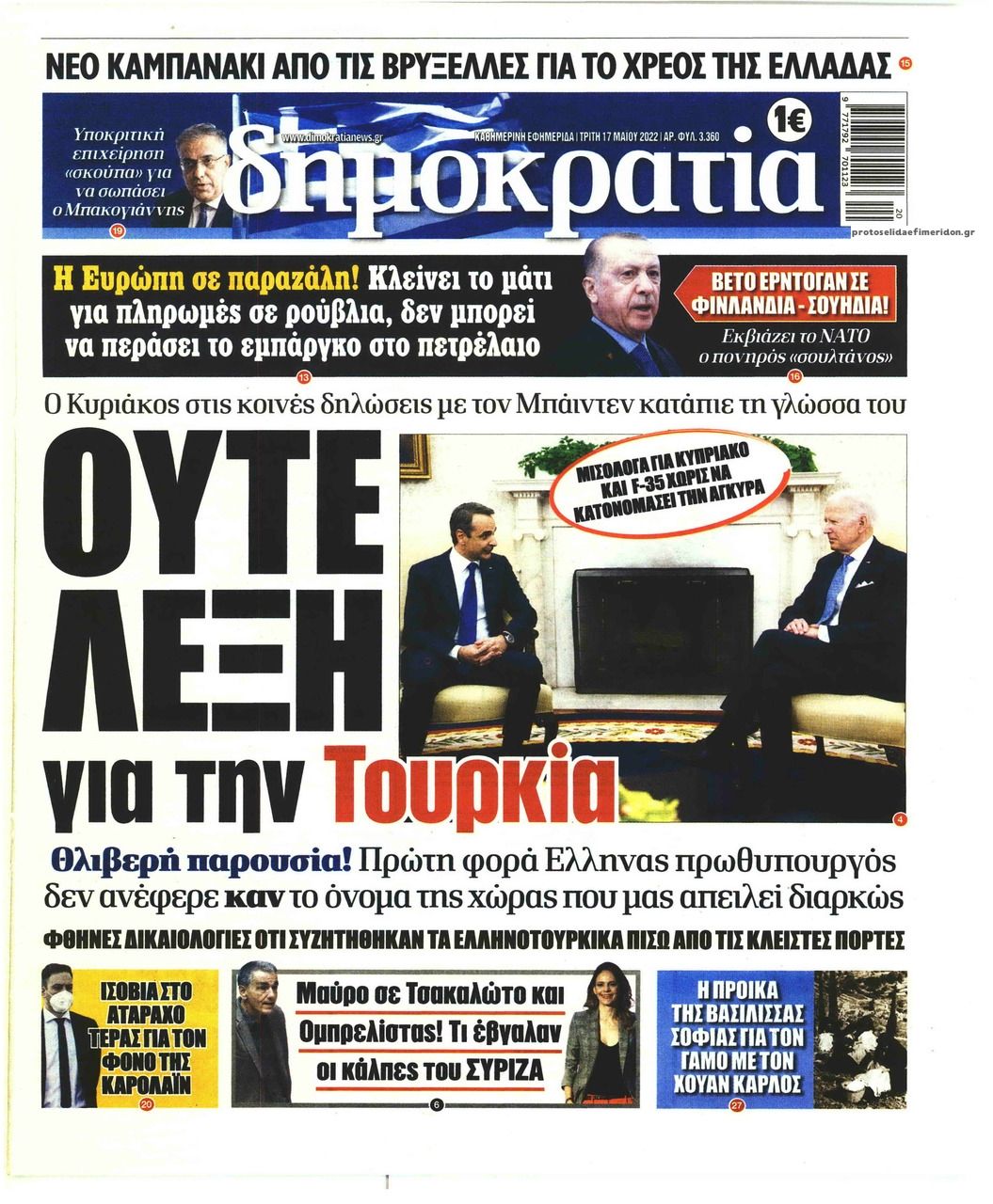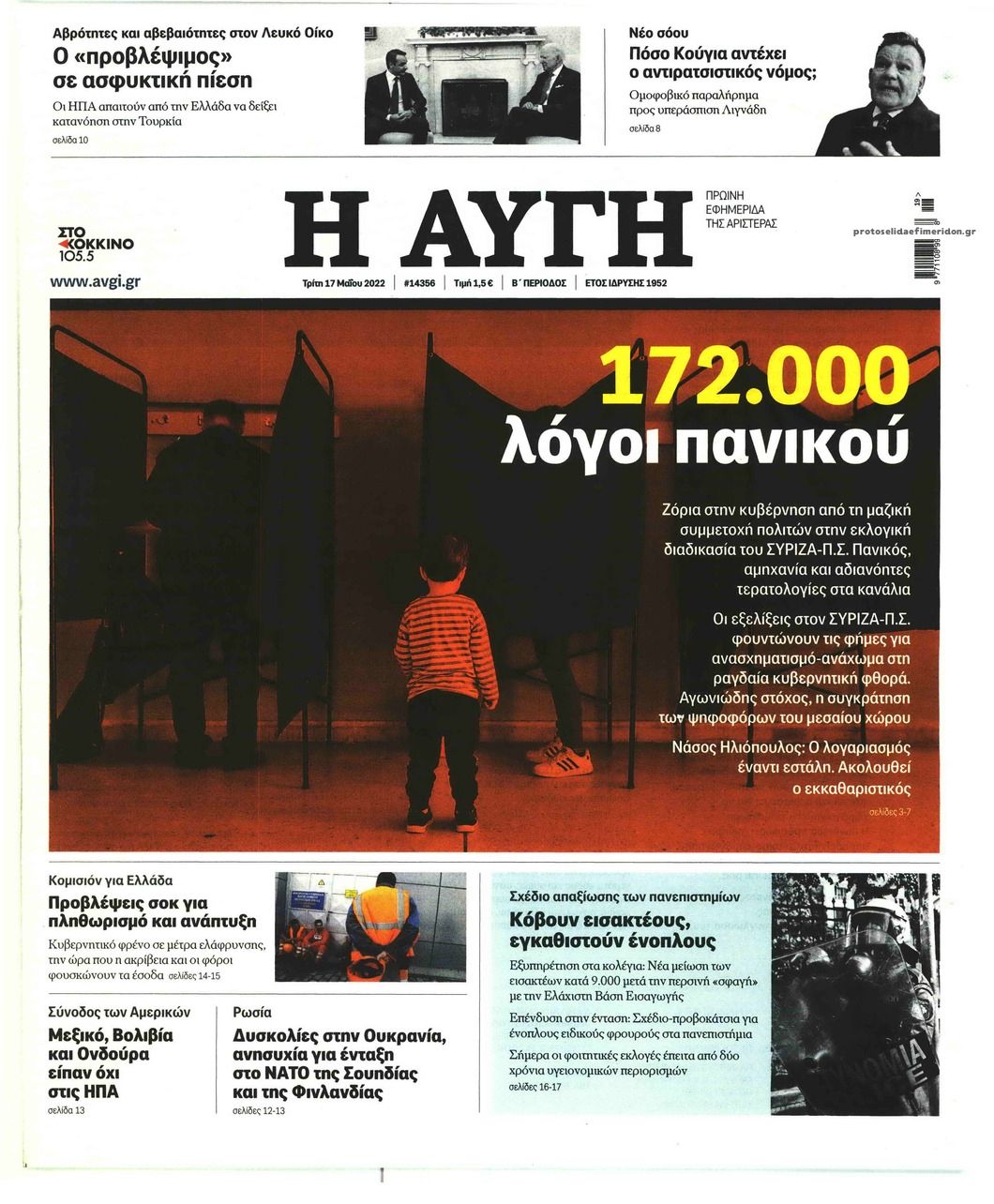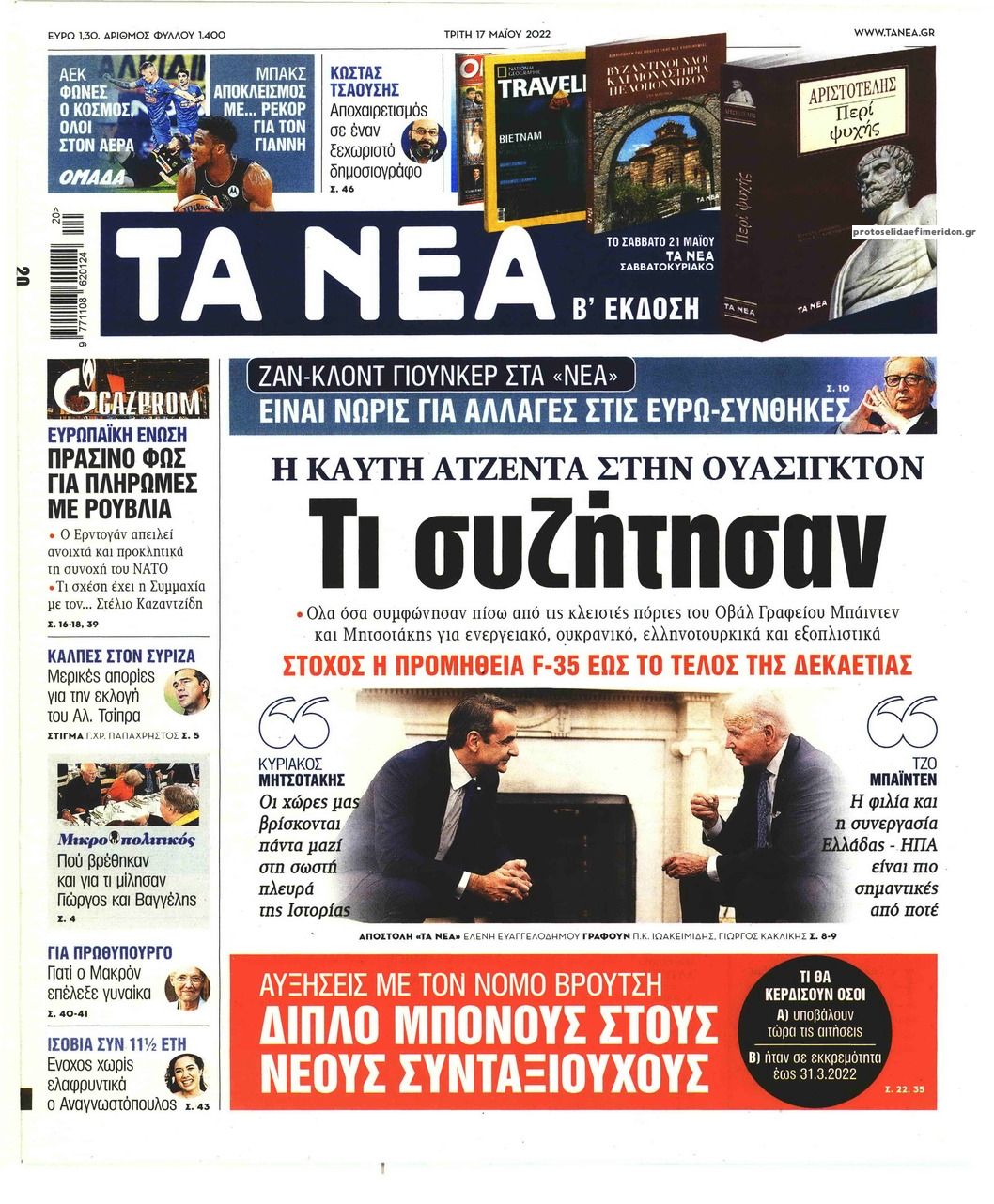 Οι εφημερίδες που κυκλοφορούν σήμερα Τρίτη 17 Μαϊου 2022