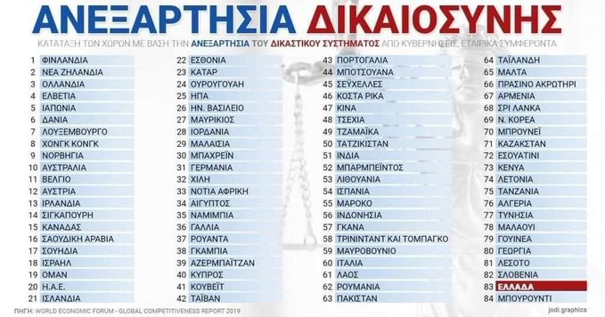 Έτσι λύνονται οι απορίες μας γιατί η Καϊλή είναι προφυλακισμένη στο Βέλγιο, ενώ εδώ οι καταδικασμένοι Λιγνάδης Φιλιππίδης είναι ελεύθεροι. Το Βέλγιο είναι στην 11η θέση & η Ελλάδα στην 83η στην ανεξαρτησία της Δικαιοσύνης. Επίσης στην ενημέρωση στην 108η!απόDimitris Papathanasiou